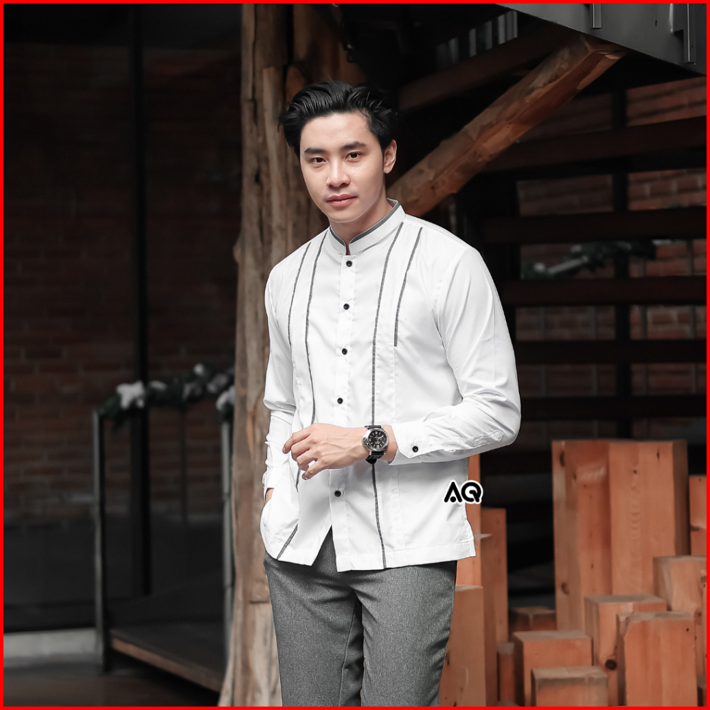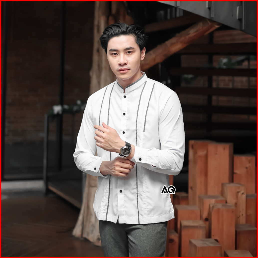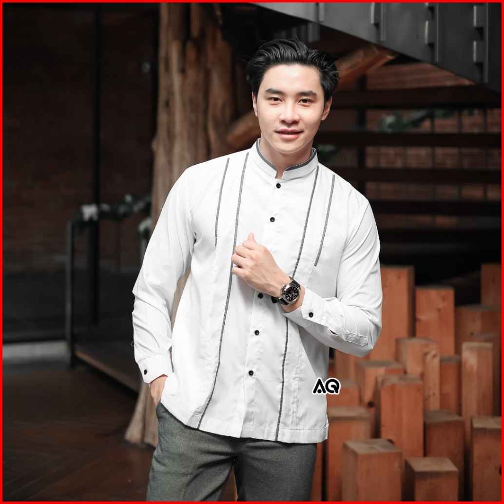 Baju Koko Pria Lengan Panjang Motif Albrani