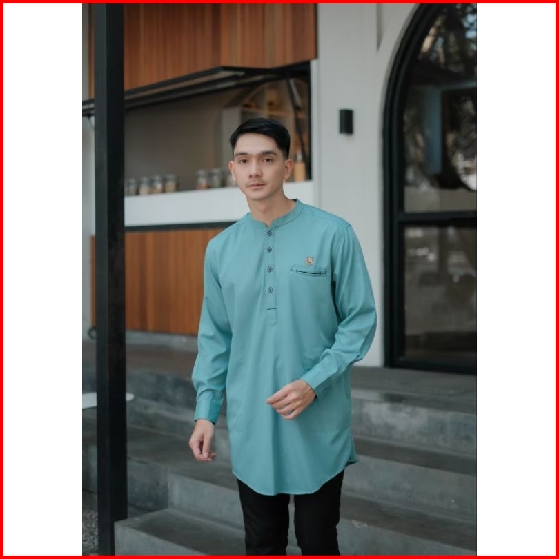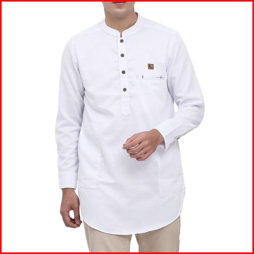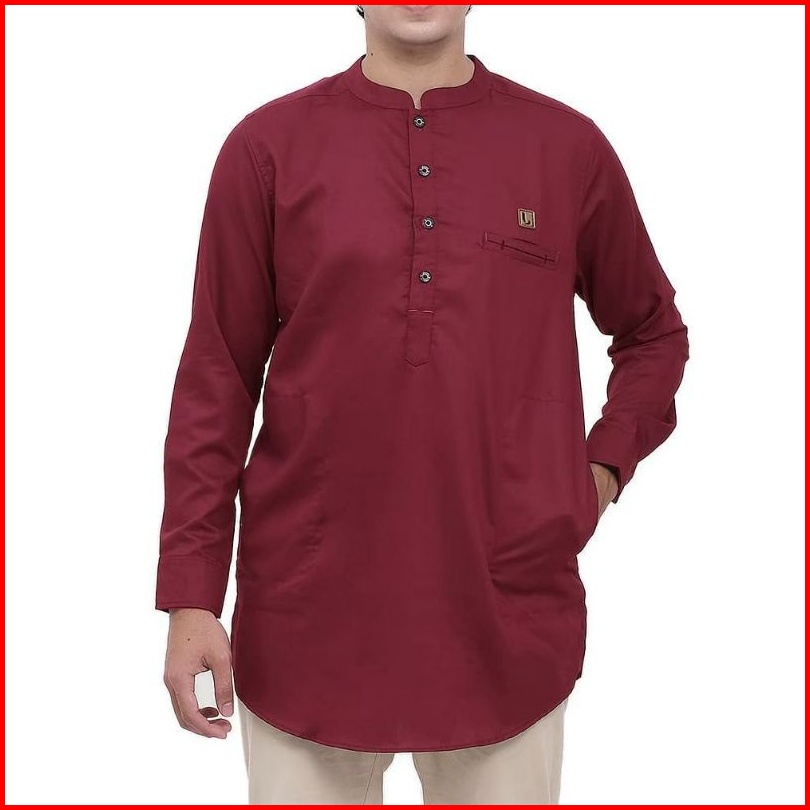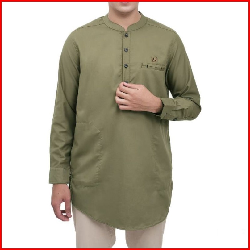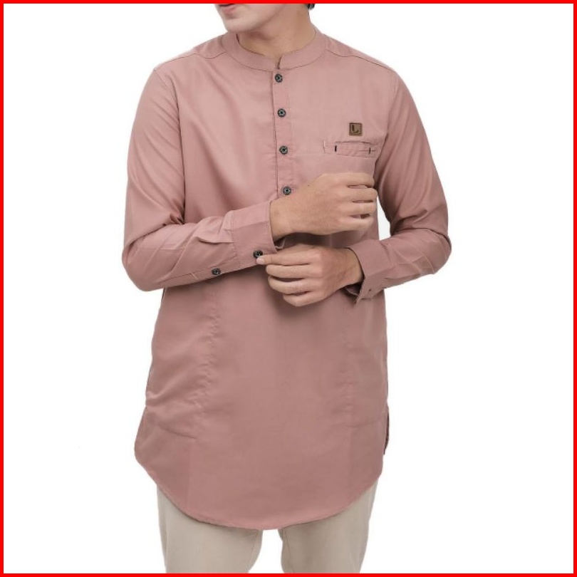 Baju Koko Kurta Lengan Panjang Pakaian Muslim Pria Warna Olive Maroon Putih Navy Pink Ukuran M L Xl