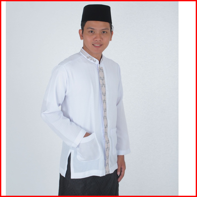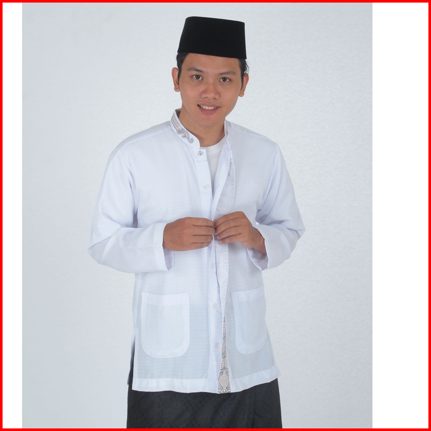 Sumberrejekijeans - Baju Koko Putih Lengan Panjang Bordir Warna Moerba Bahan Bsw Dobby Ada Saku Kiri Kanan Size M L Xl X