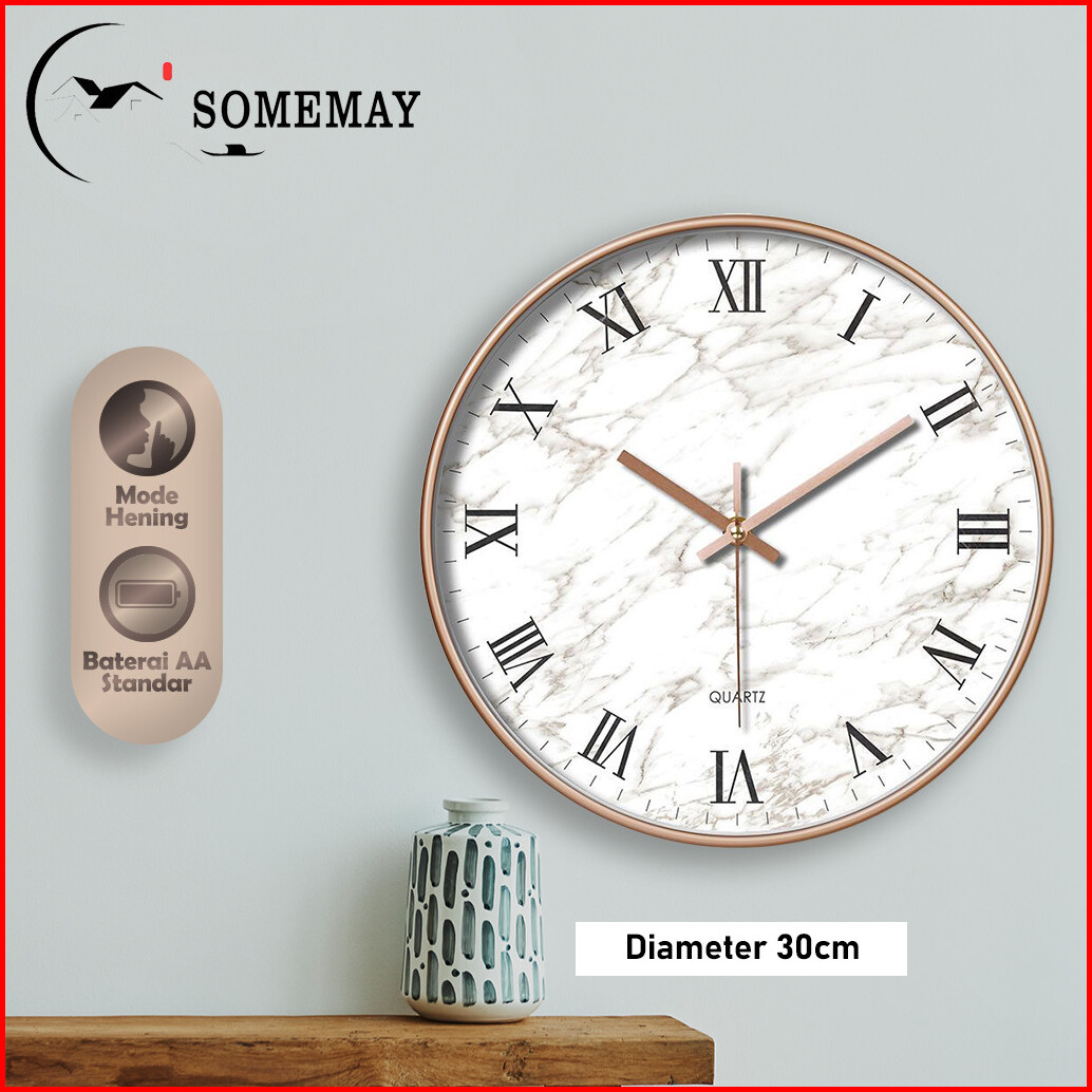 Somemay Jam Dinding Motif Marmer Putih M47 Jam Dinding Aesthetic 30cm Jam Dinding Tempel