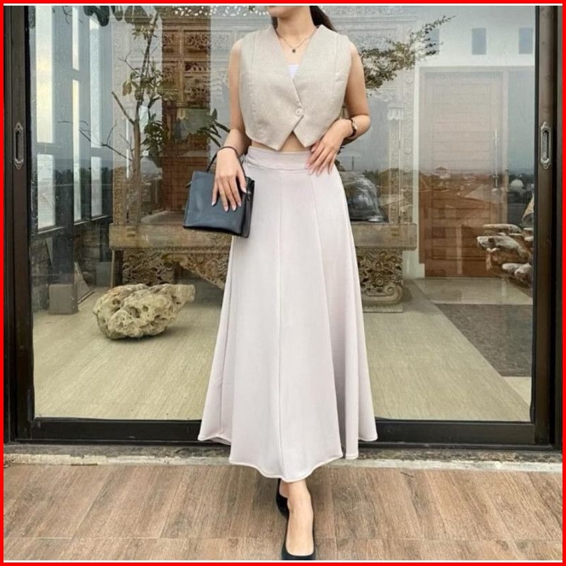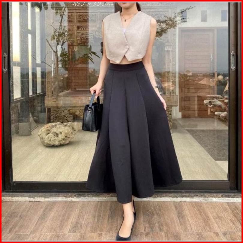 Audy Skirt - Rok Wanita Maxi Skirt Loose Korean Style - Rok Flare Scuba Basic Polos Anti Kusut
