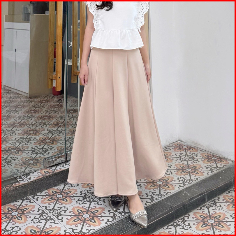 Audy Skirt - Rok Korean Style - Korean Loose Maxi Skirt Rok Wanita Anti Kusut - Rok Flare Wanita - Rok Basic Polos - Max