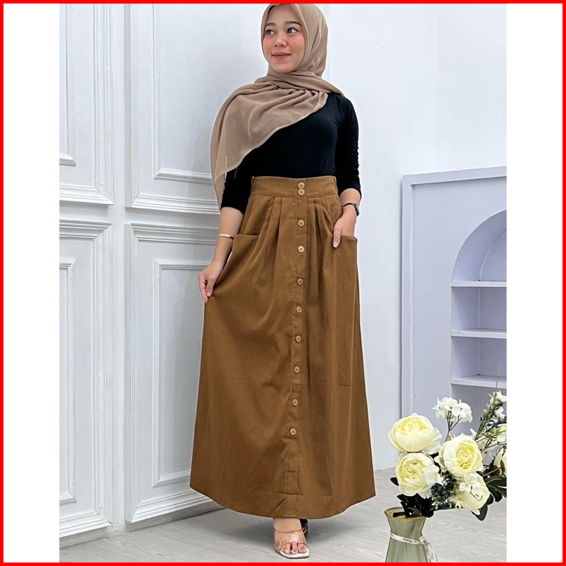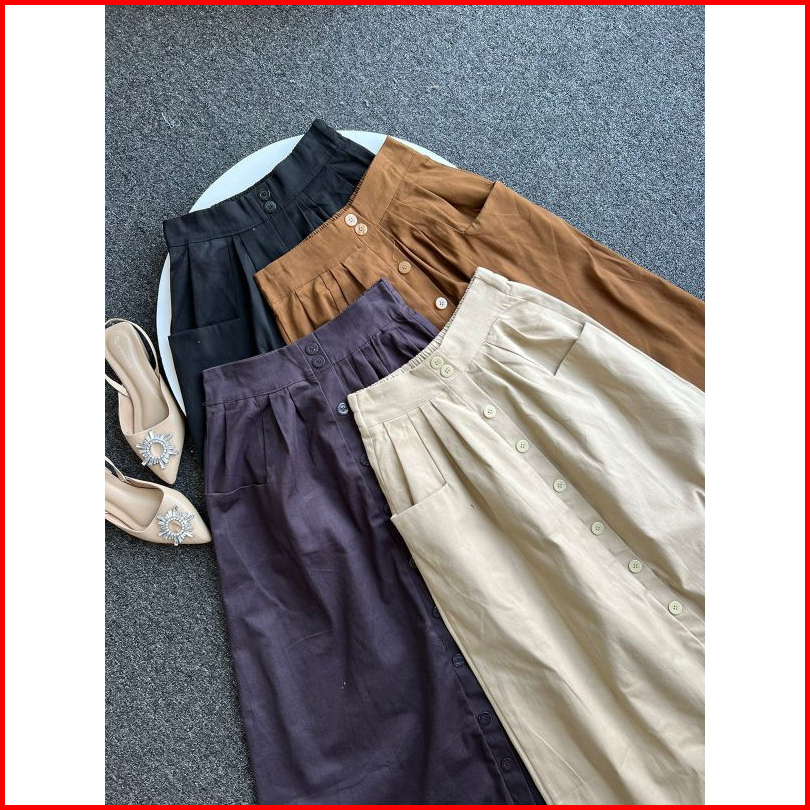 Rok Nuna Skirt Korean Style Bahan Catton Twiil Strech Premium Rok Panjang Rok Kancing