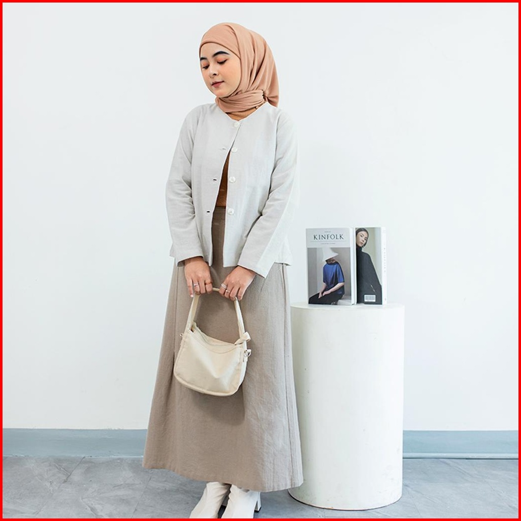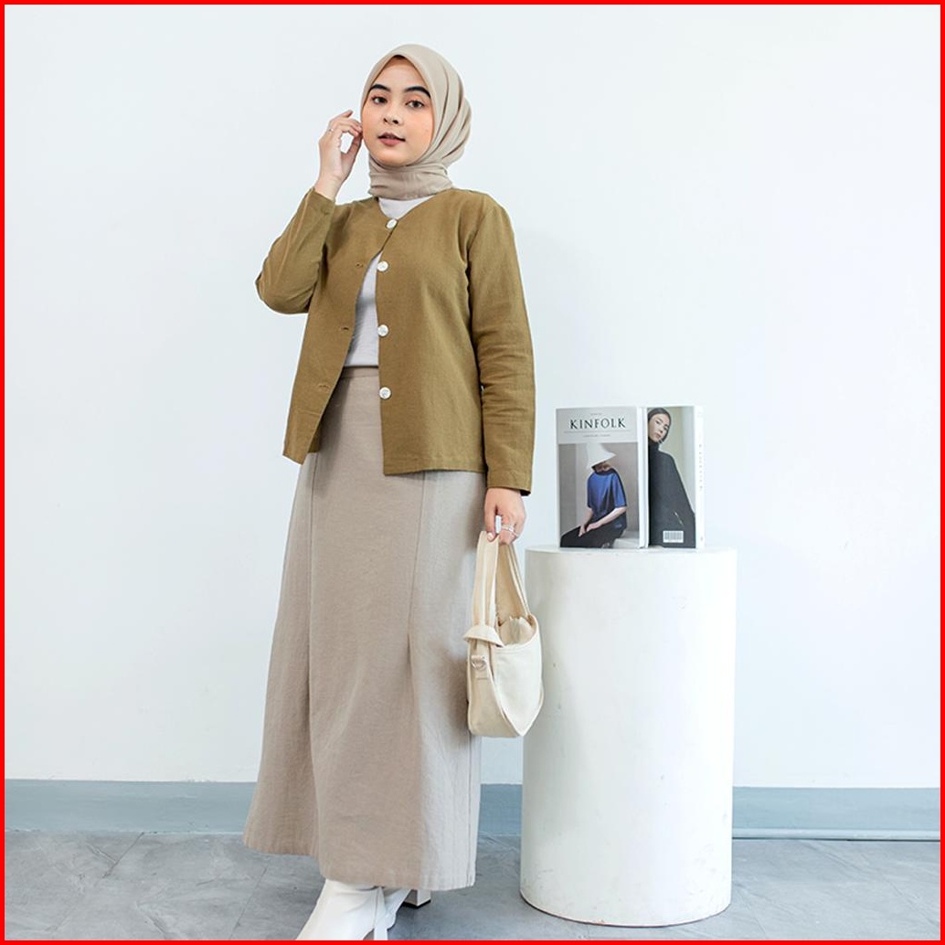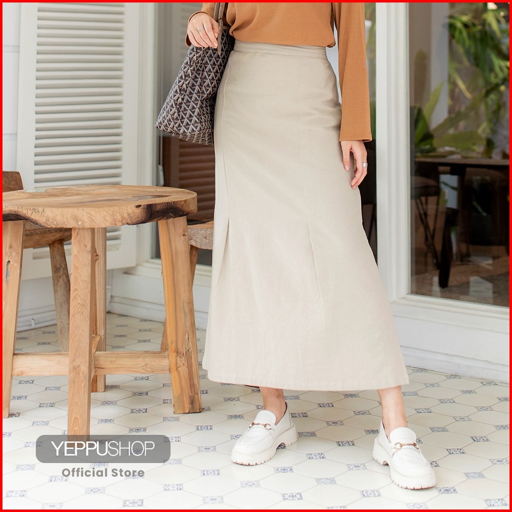 Yeppuoutfit - Shailene Mermaid Skirt Rok Panjang H-line Polos Bahan Linen Casual Daily