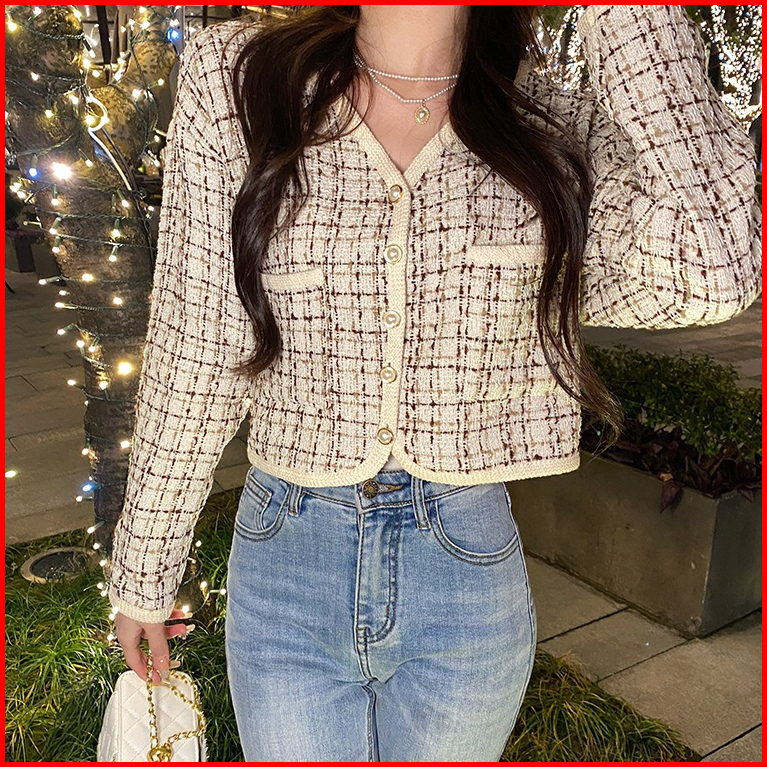 Jaket Wanita V-neck Loose Crop Import Top Lengan Panjang Cardigan