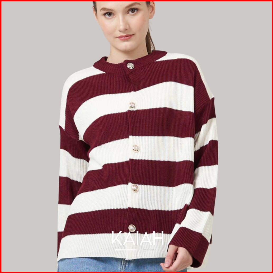 Kaiah - Raysha Stripe Cardigan Atasan Wanita Cardigan Salur Wanita