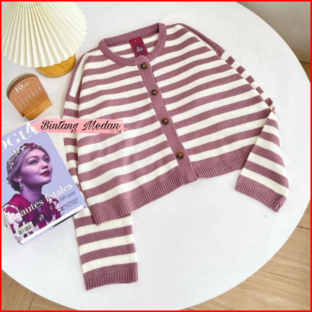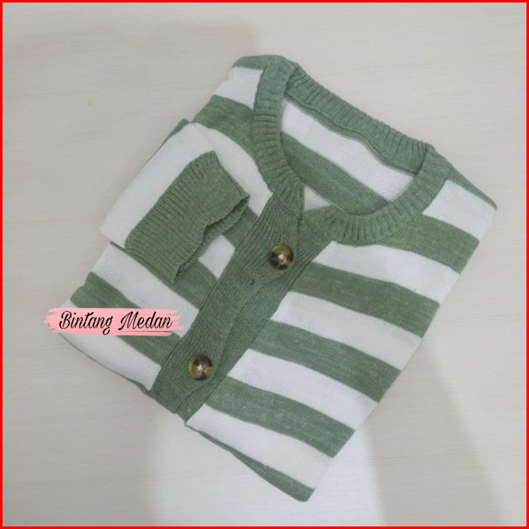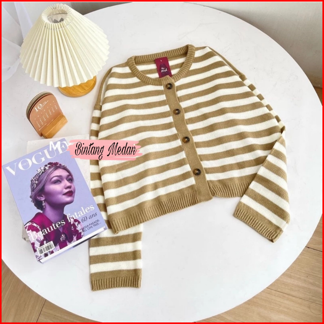 Moura Stripe Cardigan Knit - Cardigan Rajut Korean Style - Outer Wanita Kekinian