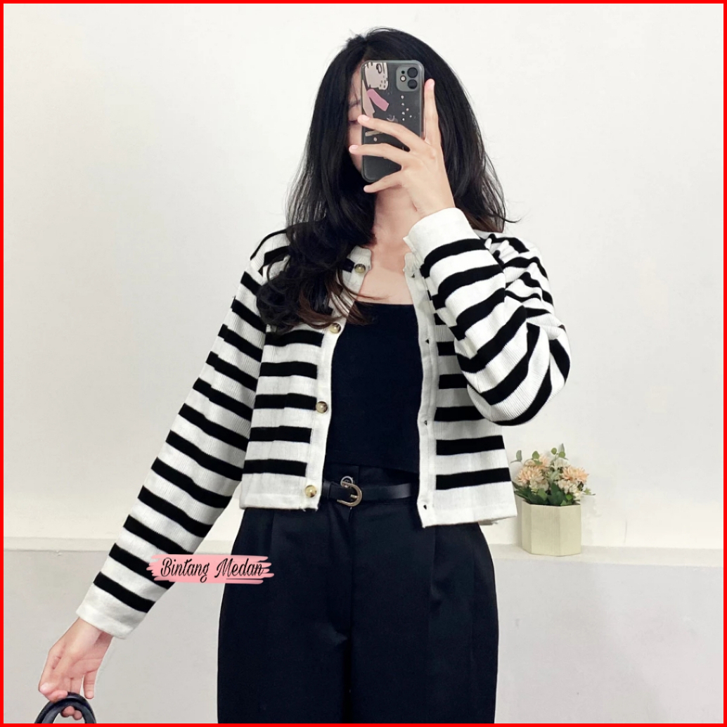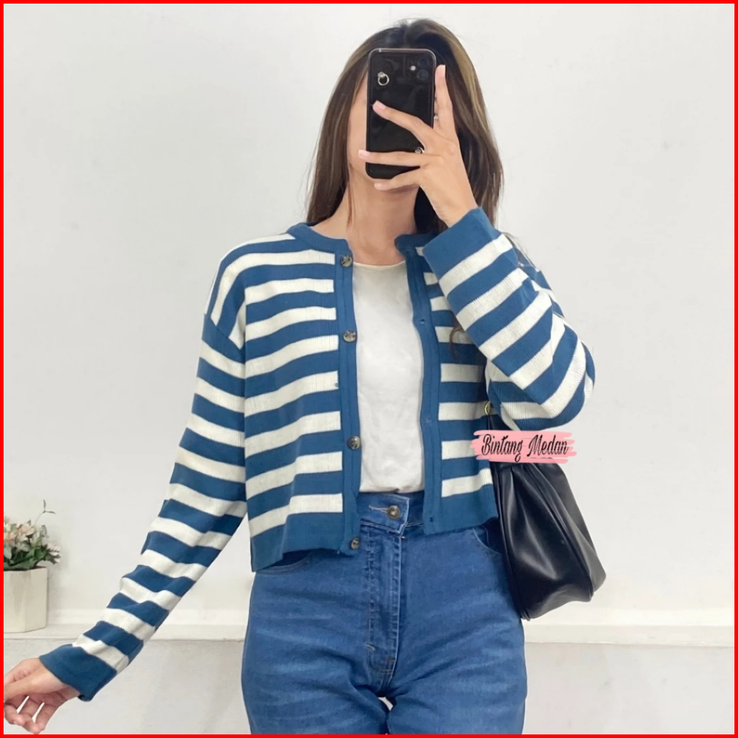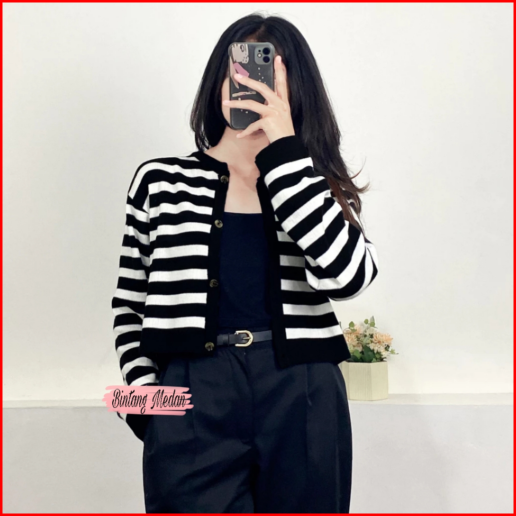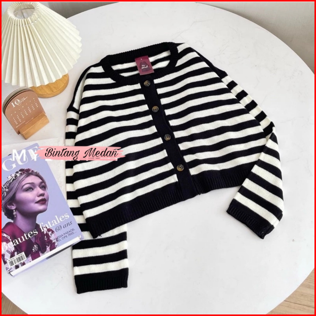 Moura Stripe Cardigan Knit - Cardigan Rajut Korean Style - Outer Wanita Kekinian