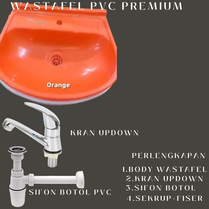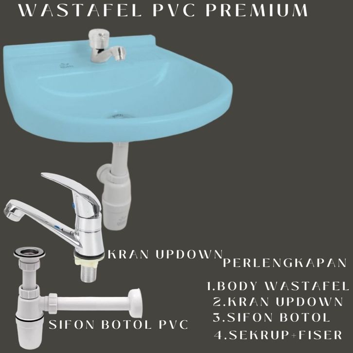 Wastafel Plastik PVC PREMIUM dengan sifon Botol dan KRAN UP DOWN