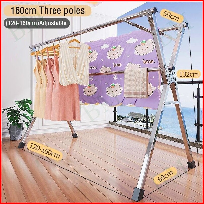 Jemuran Baju Lipat Stainless Steel Portable Stainles Gantungan Baju Jemuran Pakaian Anti Karat Kuat Tempat Jemuran Baju