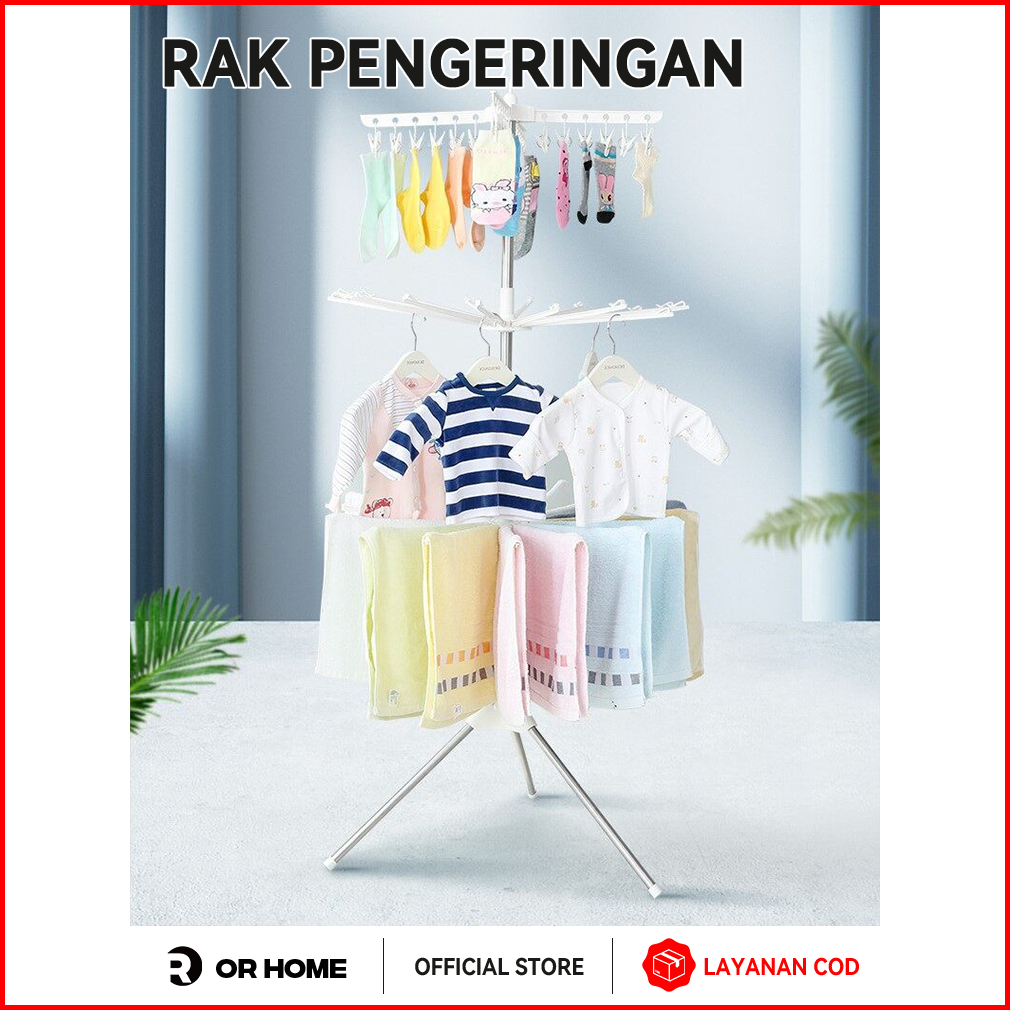 Or Rak Jemuran Menara Gantungan Jemuran Bayi Lipat Kokoh Portable 24jepitan Mjj-2