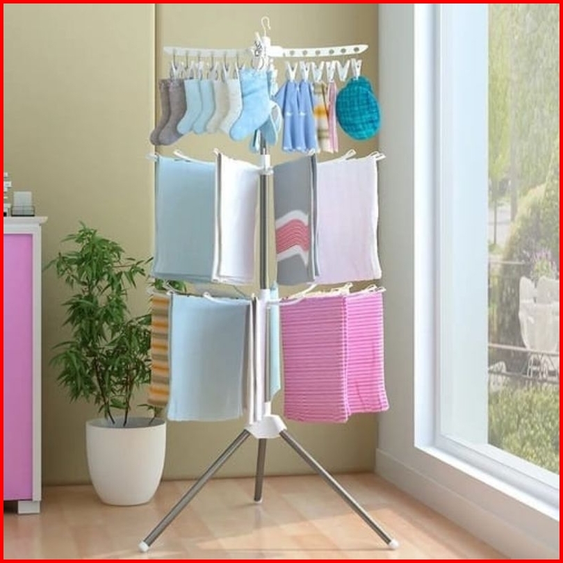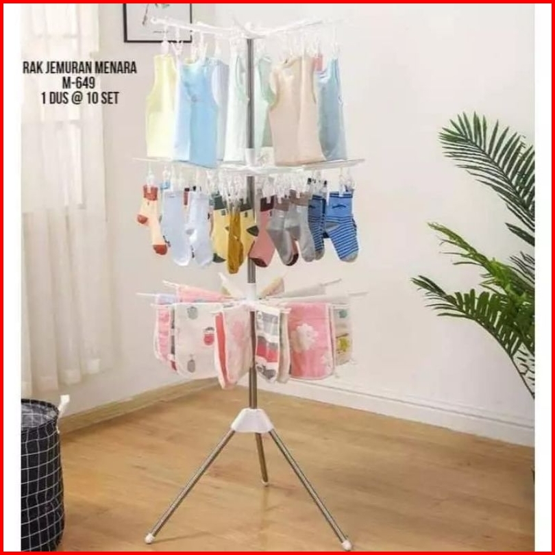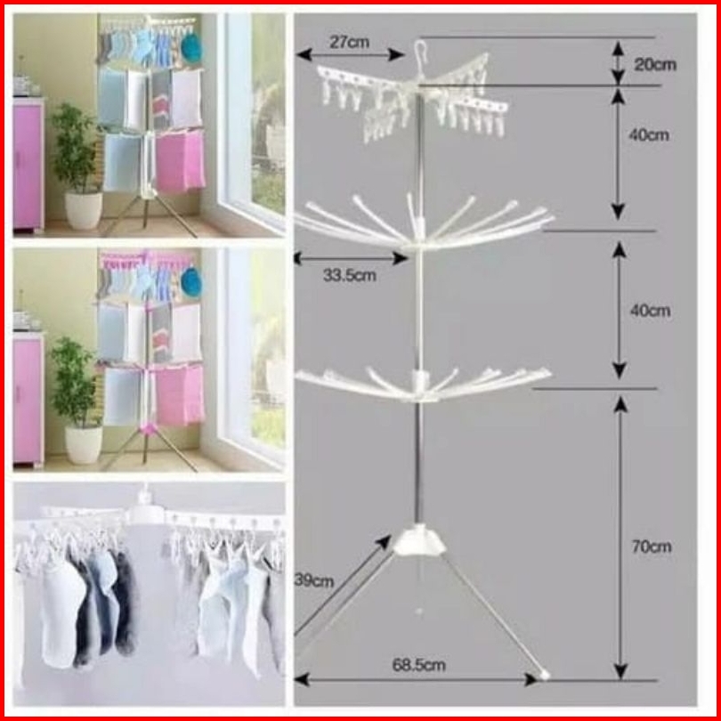 Jemuran Menara 3 Tingkat Jemuran Pakaian Bayi Jemuran 24 Jepitan Jemuran Berdiri
