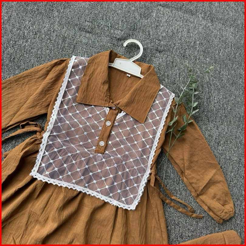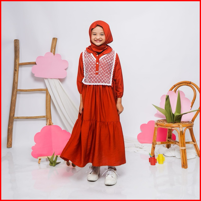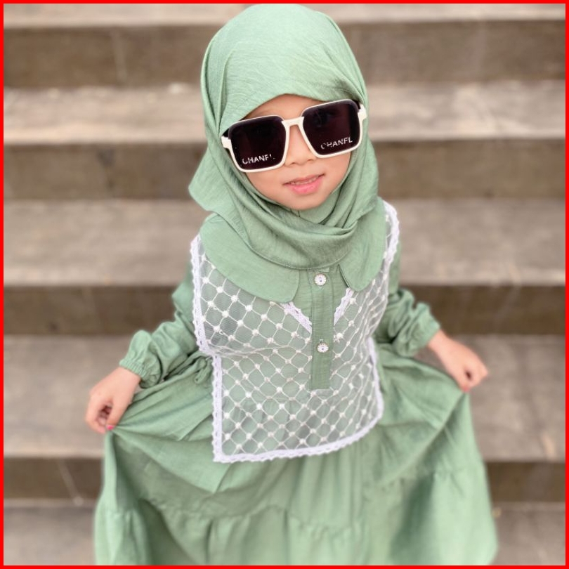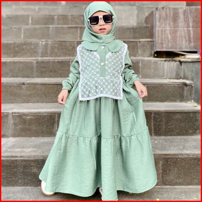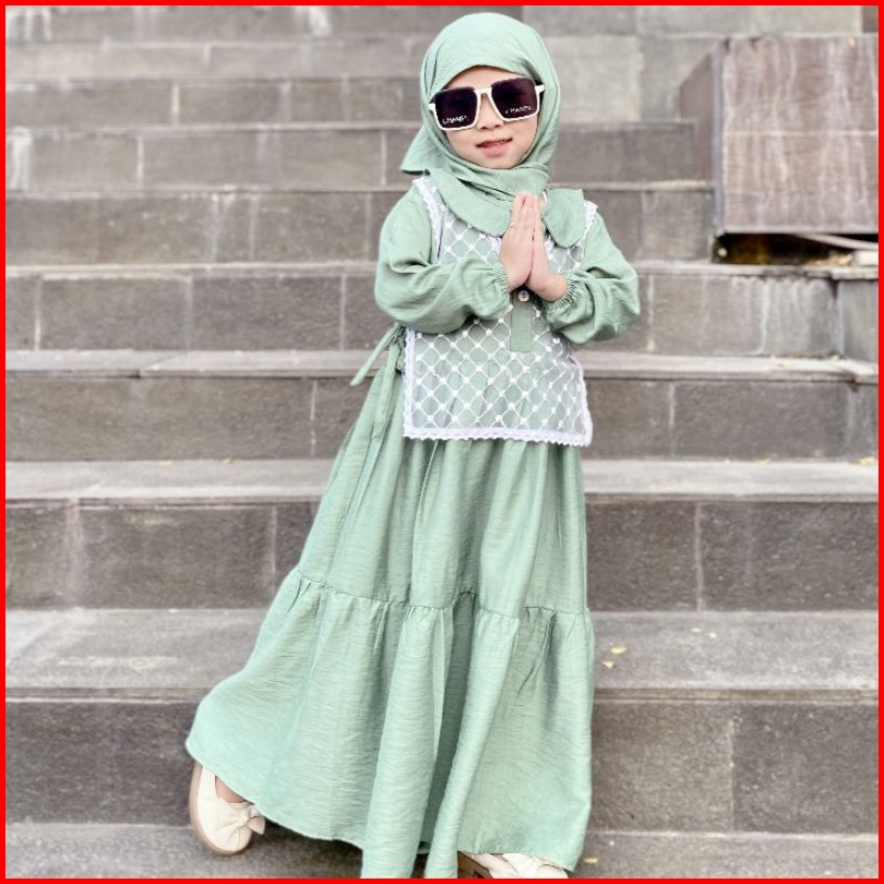 Gamis Ameena Free Hijab Gamis Anak Free Hijab Bahan Polo Linen Gamis Anak Cantik Dengan Aksen Renda Gratis Jilbab