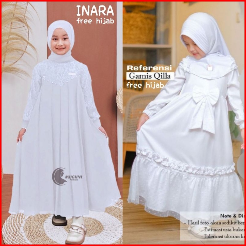 Inara Set Gamis Anak Perempuan Putih 1-13 Tahun Bisa Couple Baju Manasik Haji Anak Tk Brukat Tille
