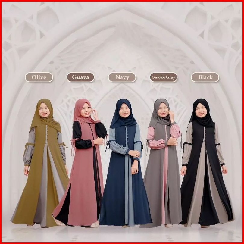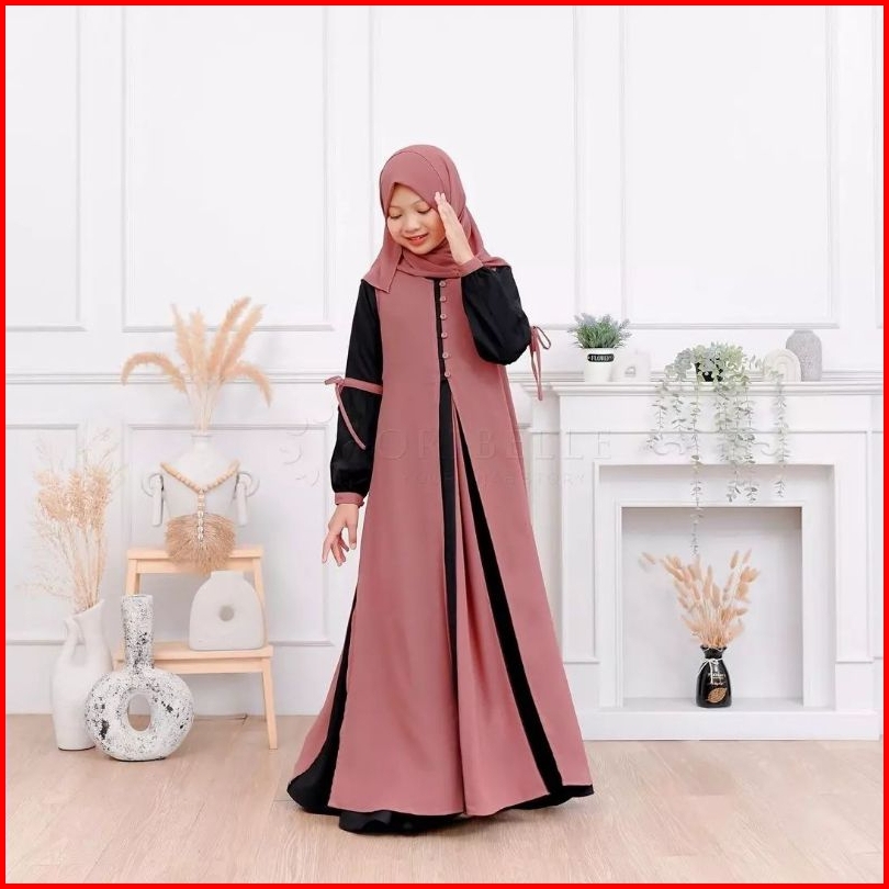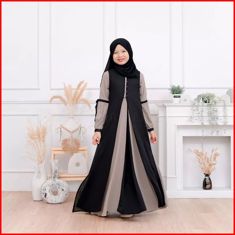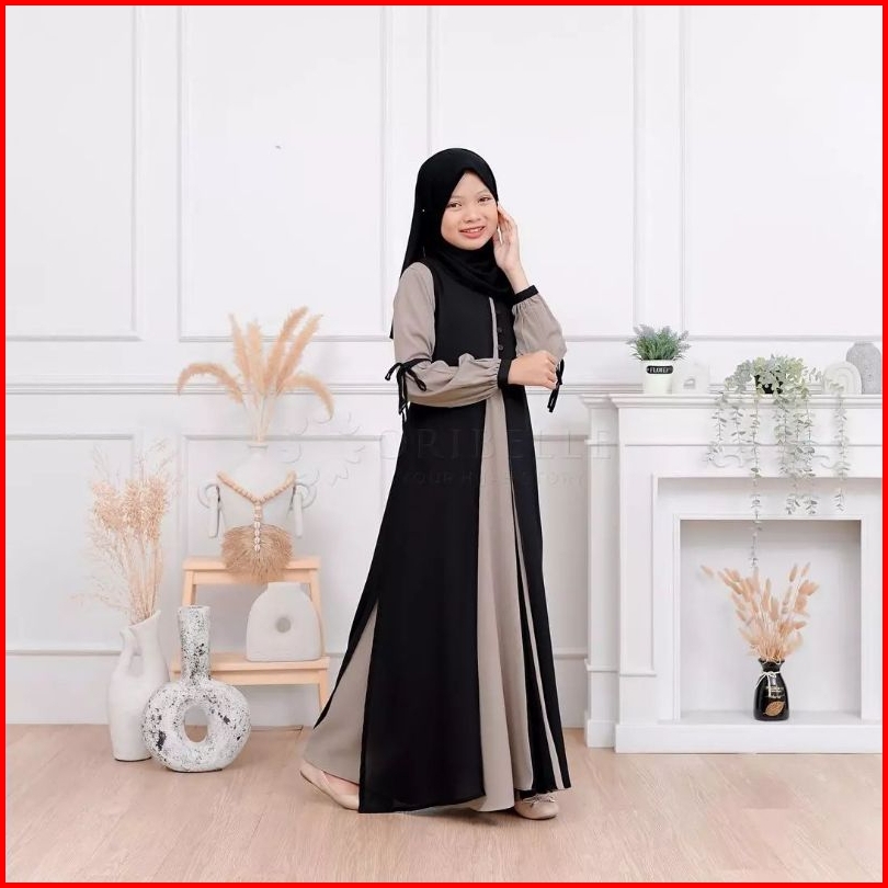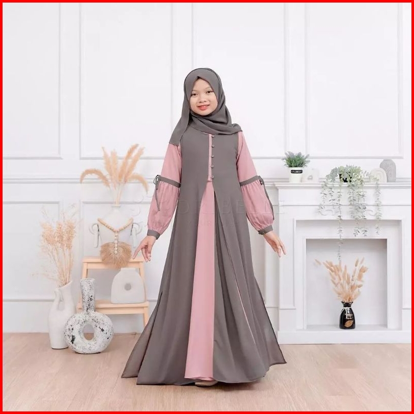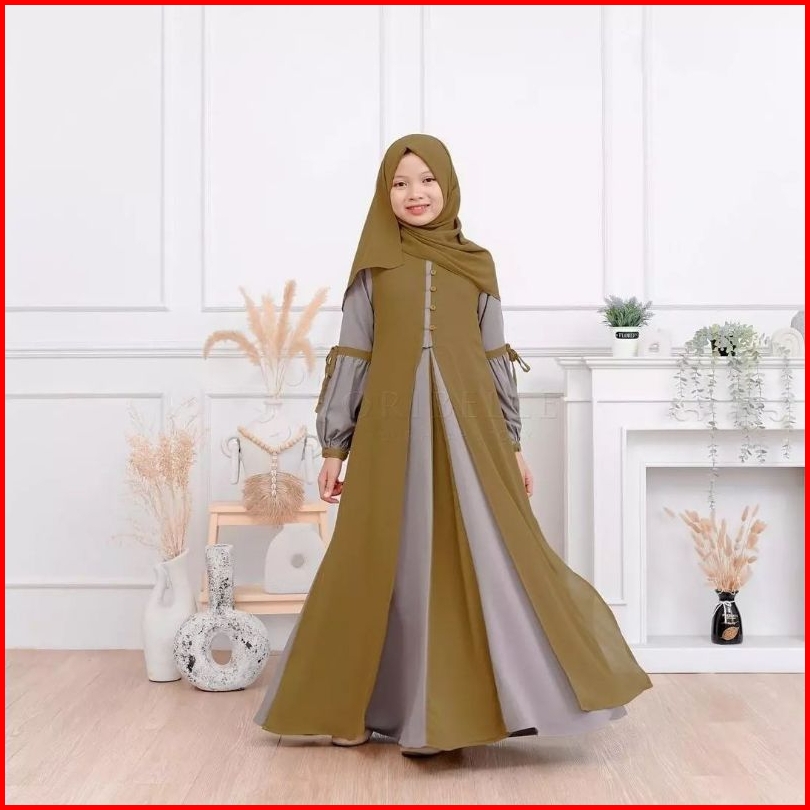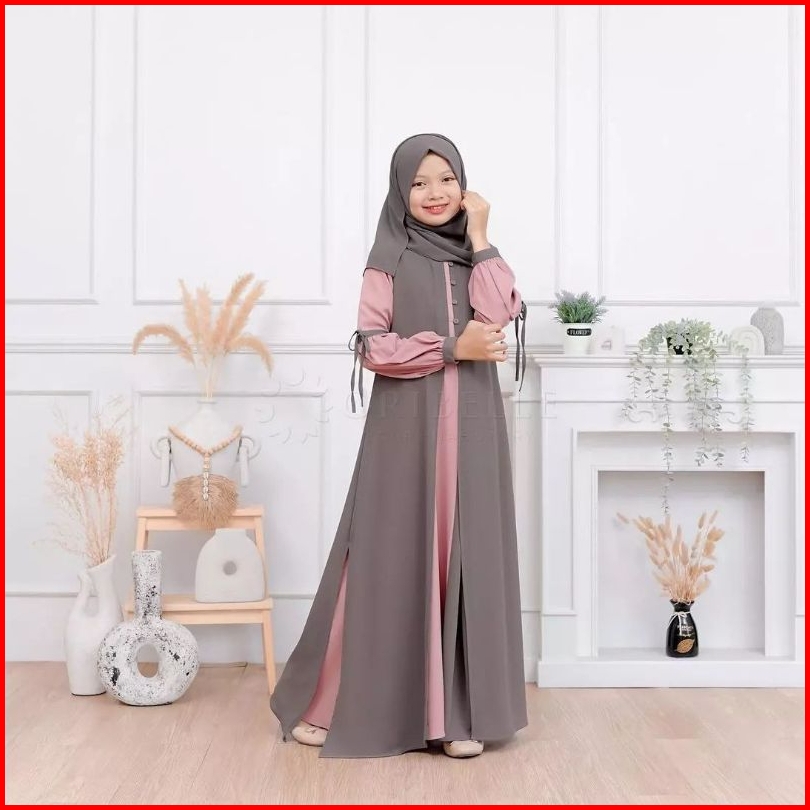 Adeeva Kids Plus Kerudung Baju Gamis Anak Tanggung Perempuan Usia 10-15 Tahun Bahan Crinkle Mix Ceruty Babydoll Gamis Ko