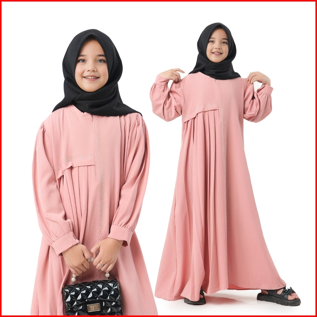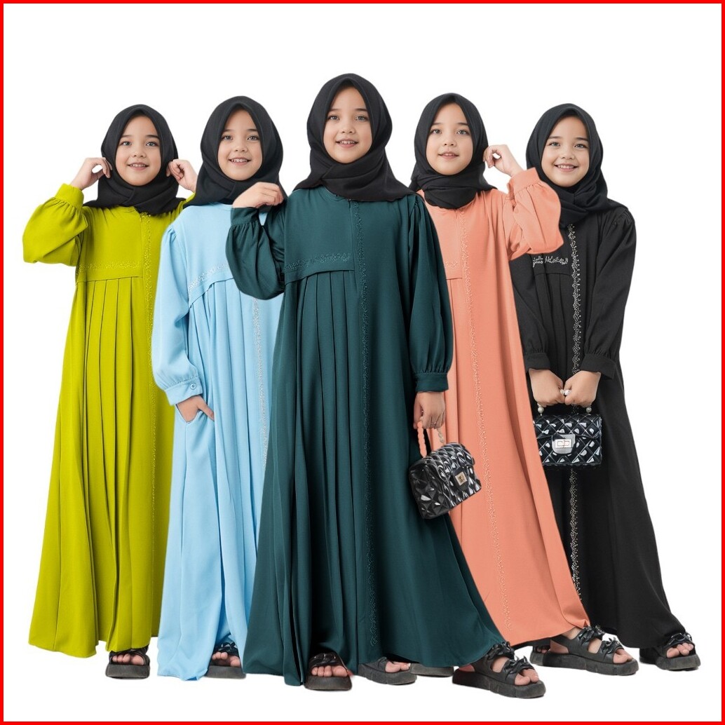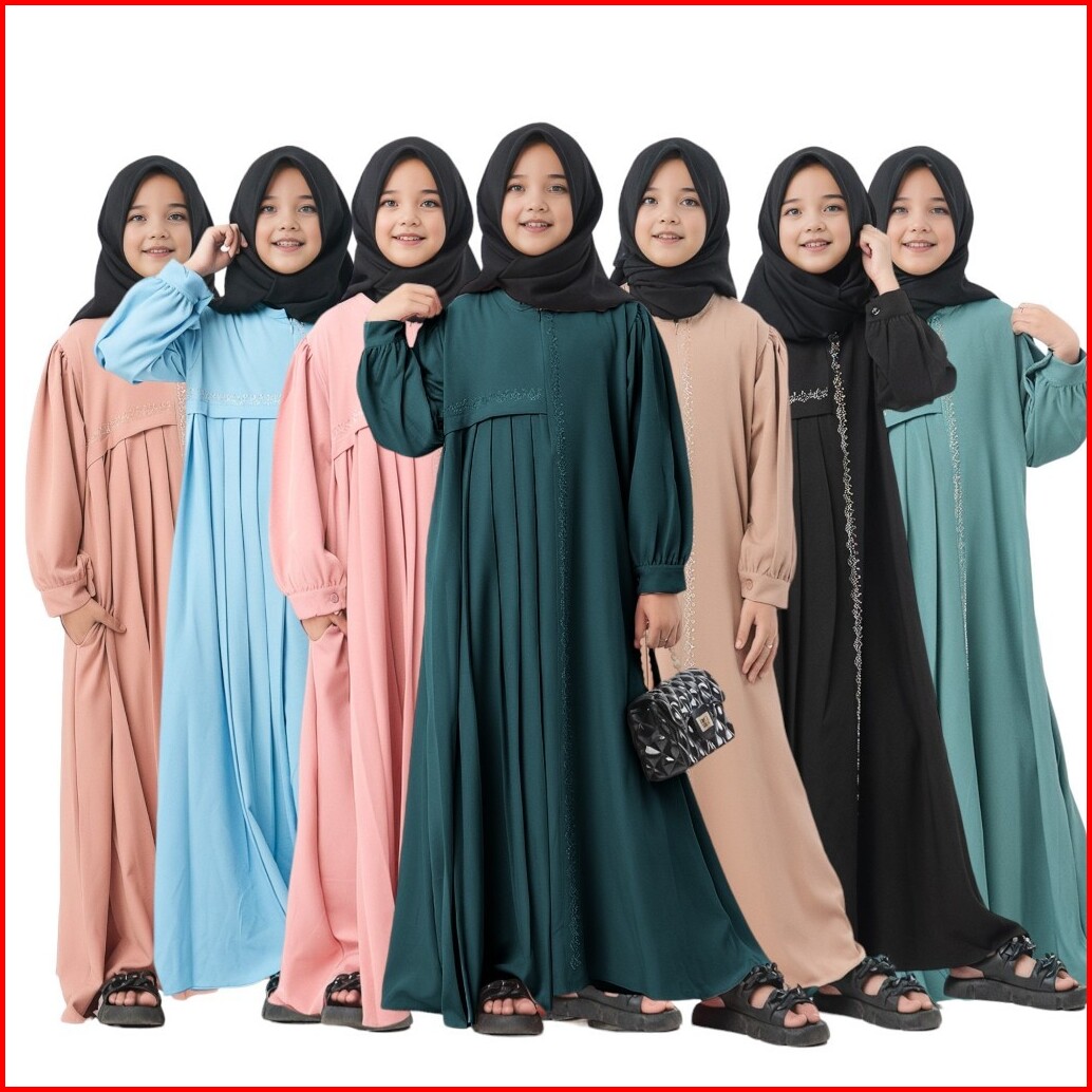 Dress Anak Perempuan Camilah Gamis Polos Mix Swaroski Usia 6th Sampai 12th Fashion Muslim Anak 2024