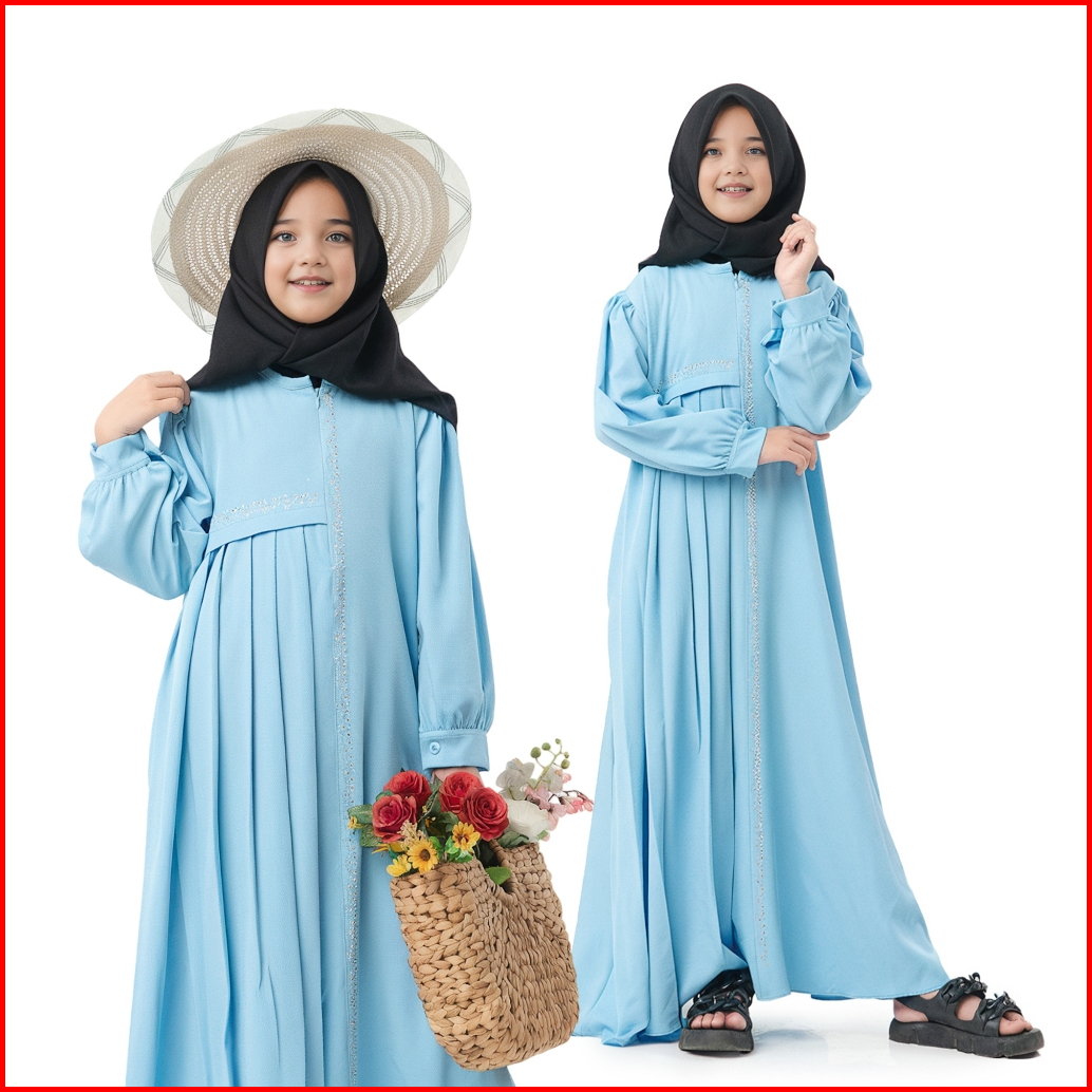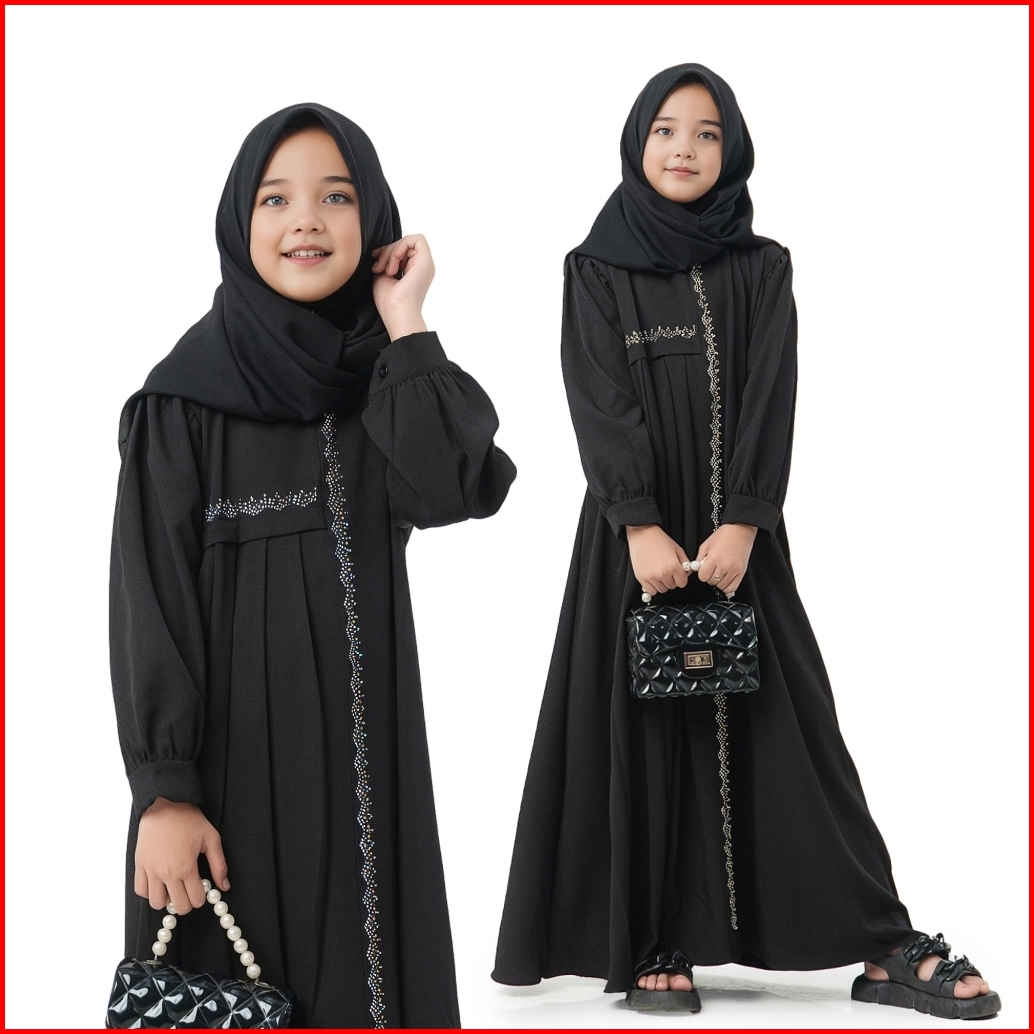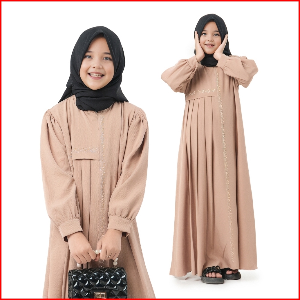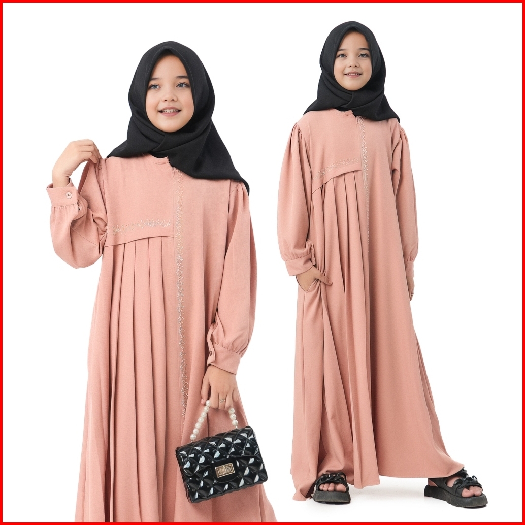 Dress Anak Perempuan Camilah Gamis Polos Mix Swaroski Usia 6th Sampai 12th Fashion Muslim Anak 2024