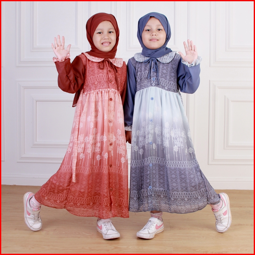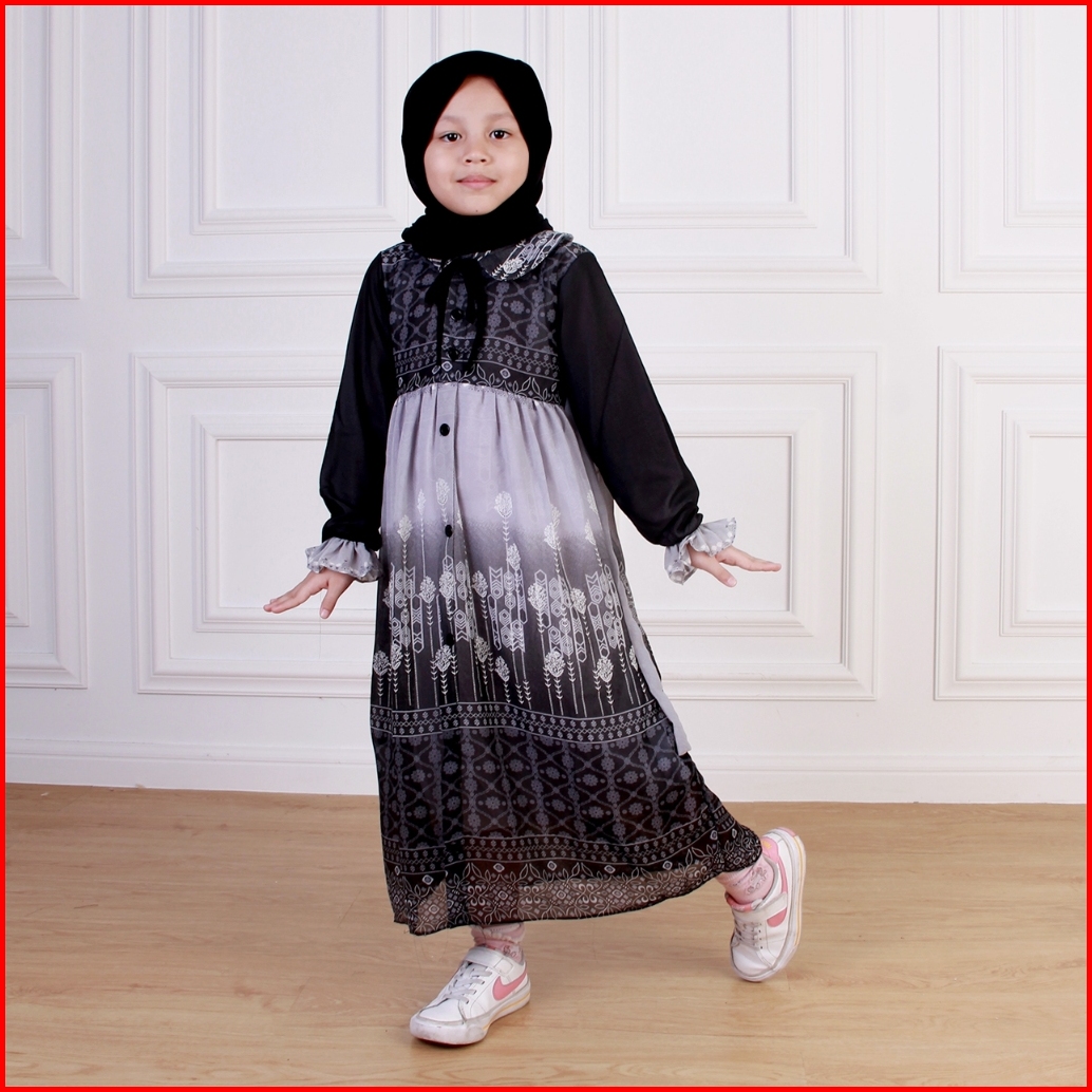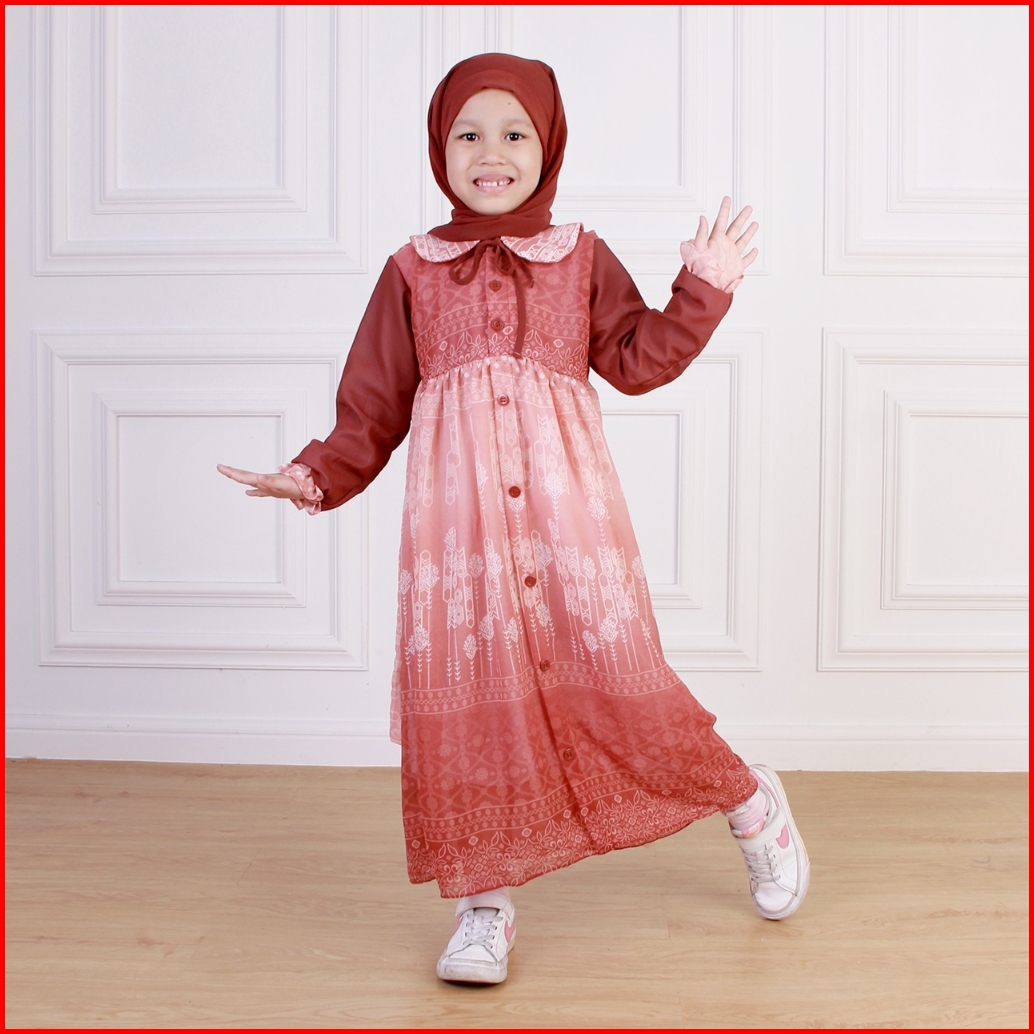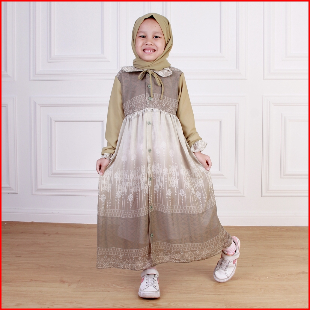 Dungdungkids Gamis Anak Yumna Ceruty Etnik Free Pashmina Tali 3 - 11 Tahun