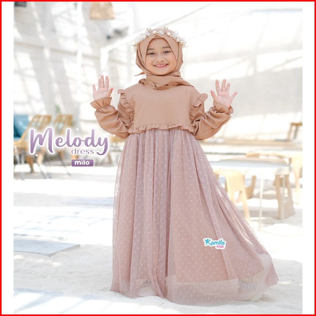 Brukat Anak Gaun Perempuan Gamis Muslim Anak Perempuan Set Hijab 2024 Baju Brokat Tille Simple