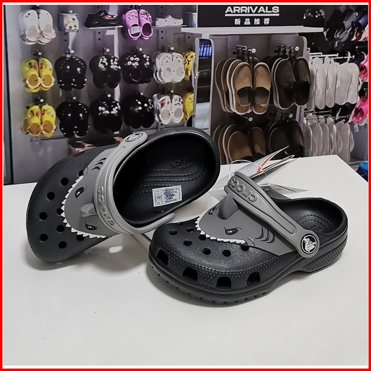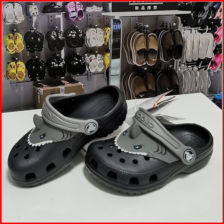 Crocs Shark Fin Black Sandal Anak Cowok Laki-laki Karet Anti Air