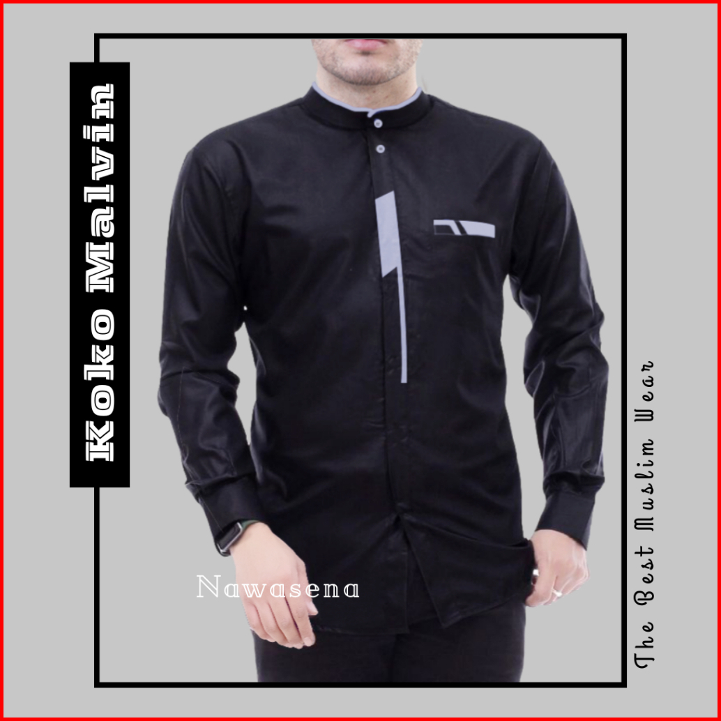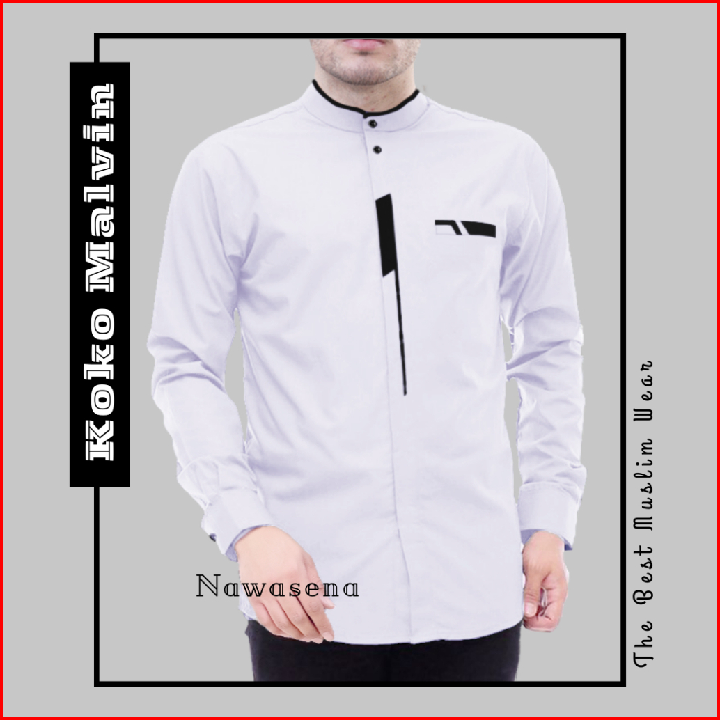 Baju Koko Pria - Baju Koko Putih Dewasa Lengan Panjang Motif Malvin Bahan Toyobo Size M L Xl Xxl