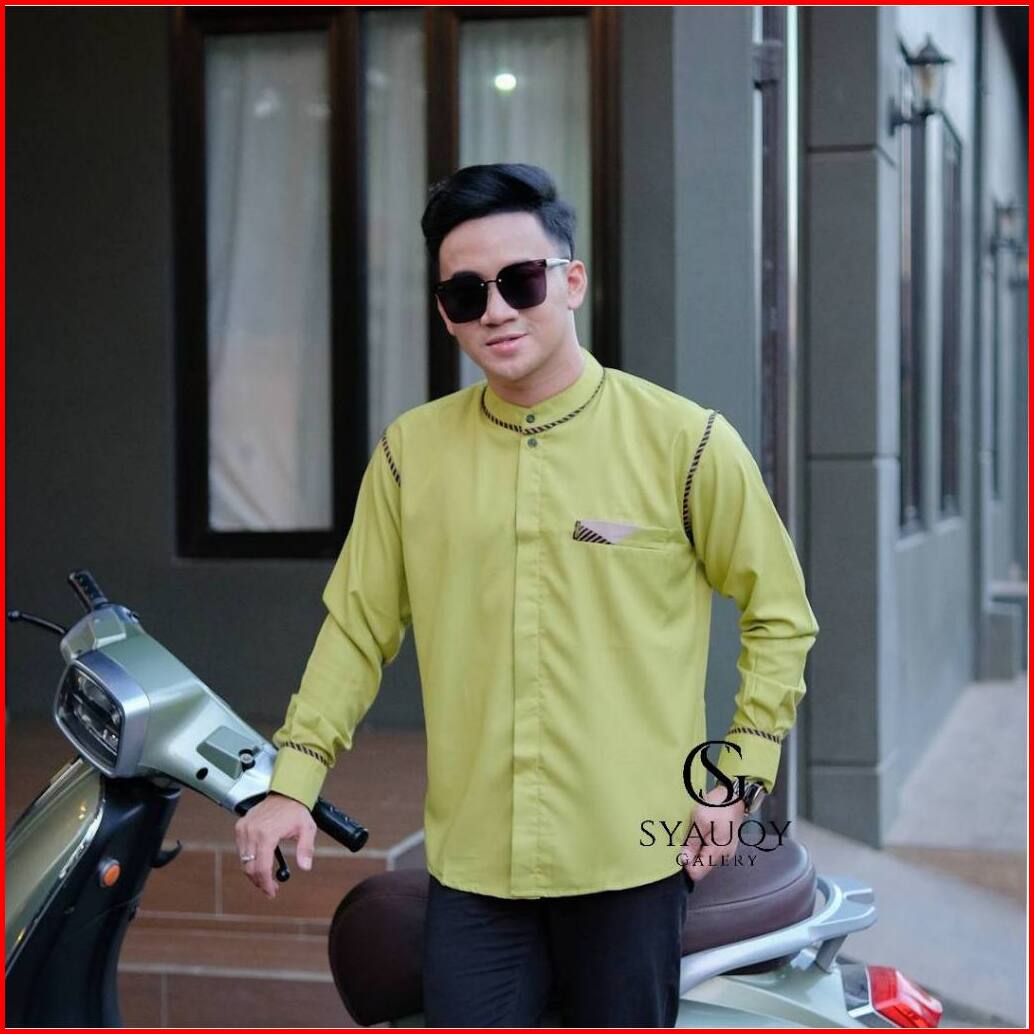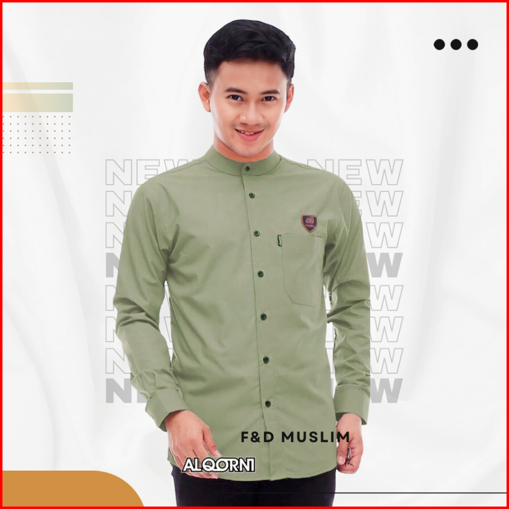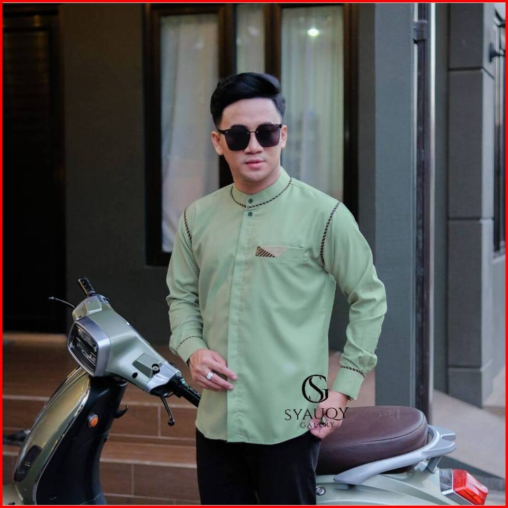 Baju Koko Polos Pria Lengan Panjang Motif Kaleb Warna Sage Original Al Qorni Model Terbaru Trendy Dan Casual Bahan Katun