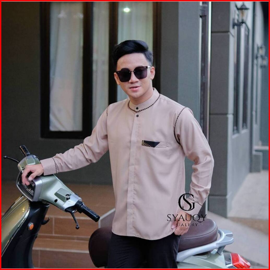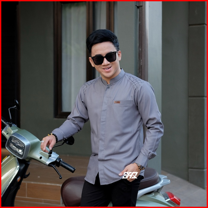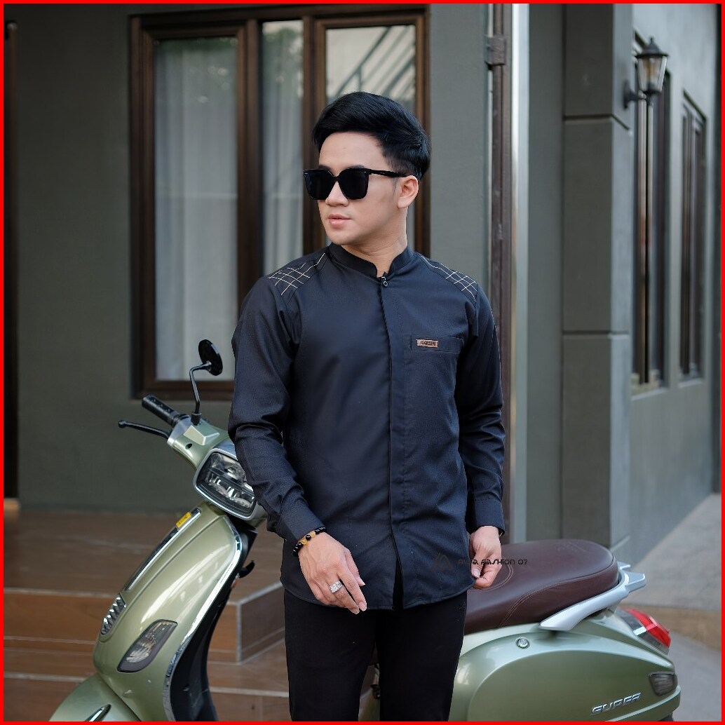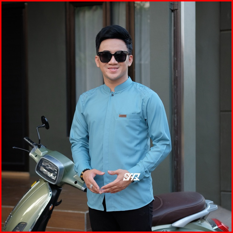 Baju Koko Polos Pria Lengan Panjang Motif Kaleb Warna Sage Original Al Qorni Model Terbaru Trendy Dan Casual Bahan Katun