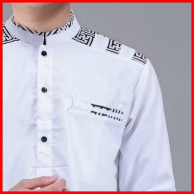 Baju Koko Pria Lengan Panjang El Rumi Terbaru Warna Putih Terlaris Kombinasi Batik