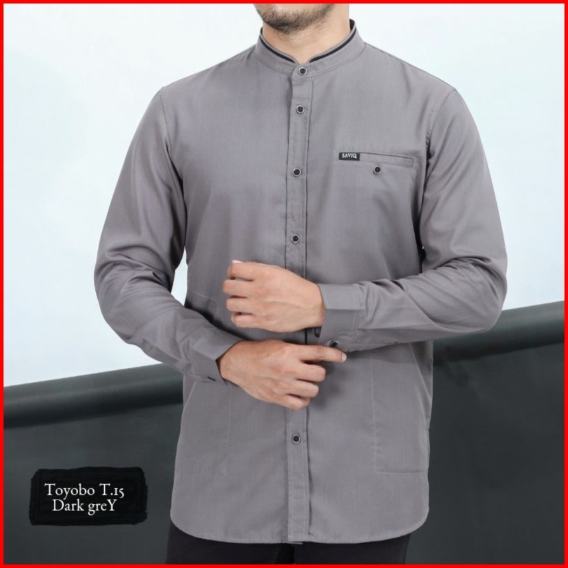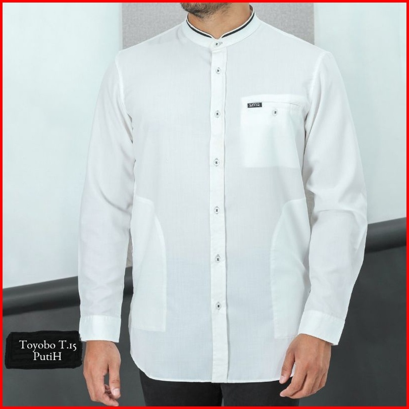 Kemeja Koko Pria Lengan Panjang List Leher Bahan Toyobo Kode T.015