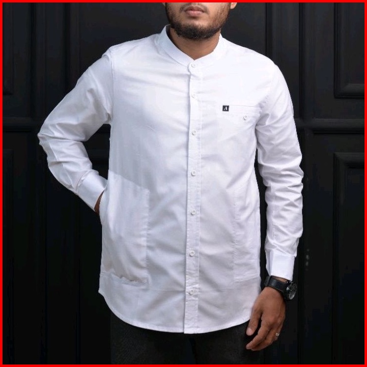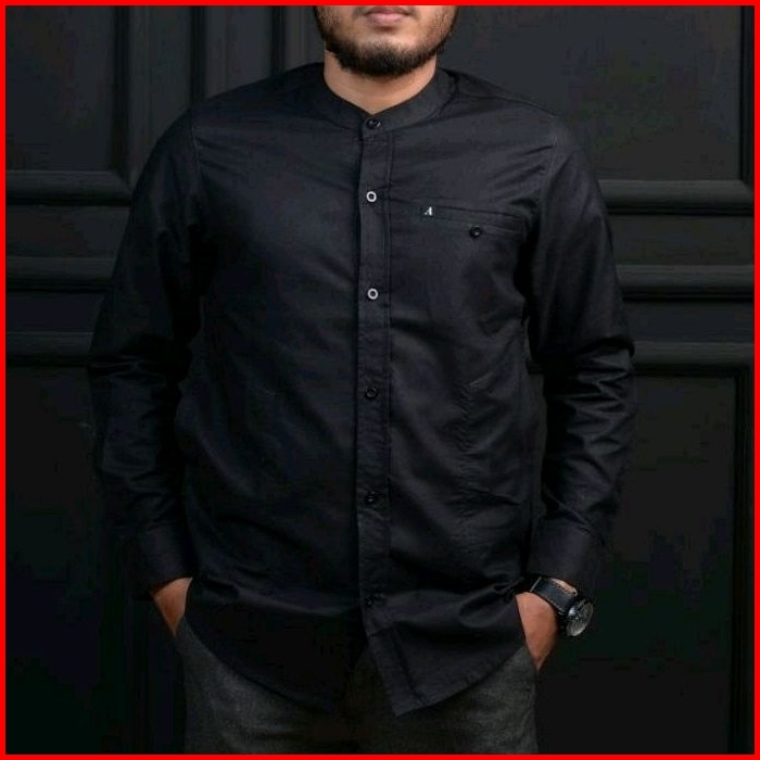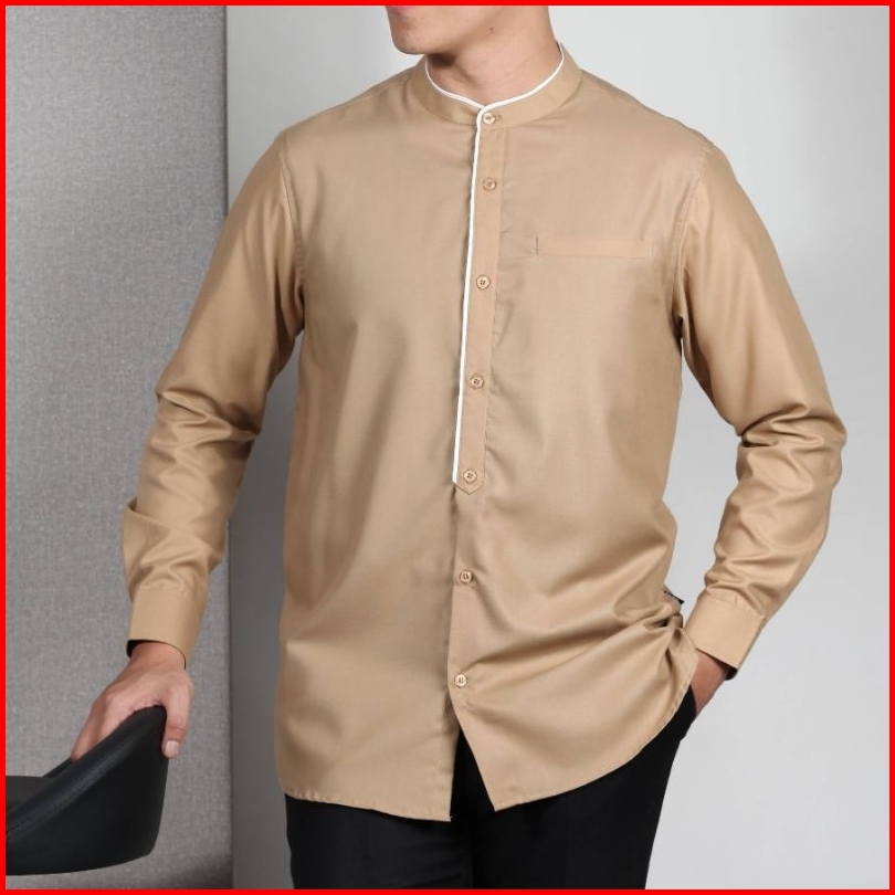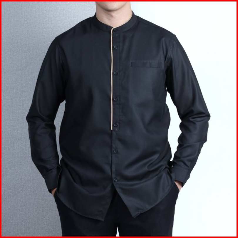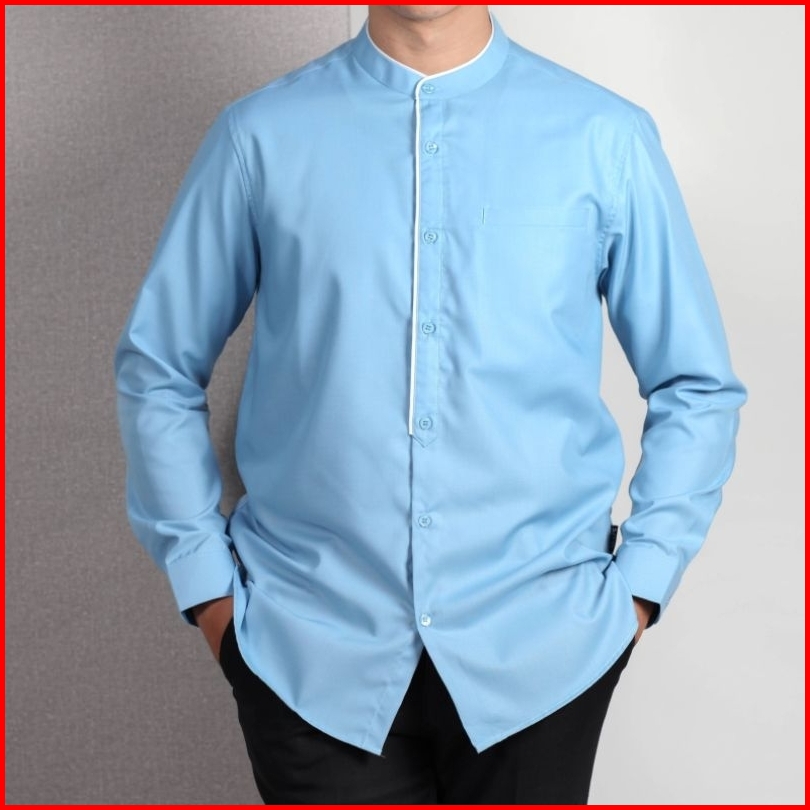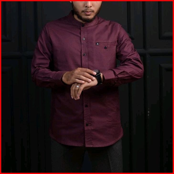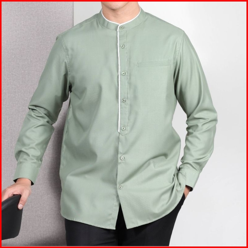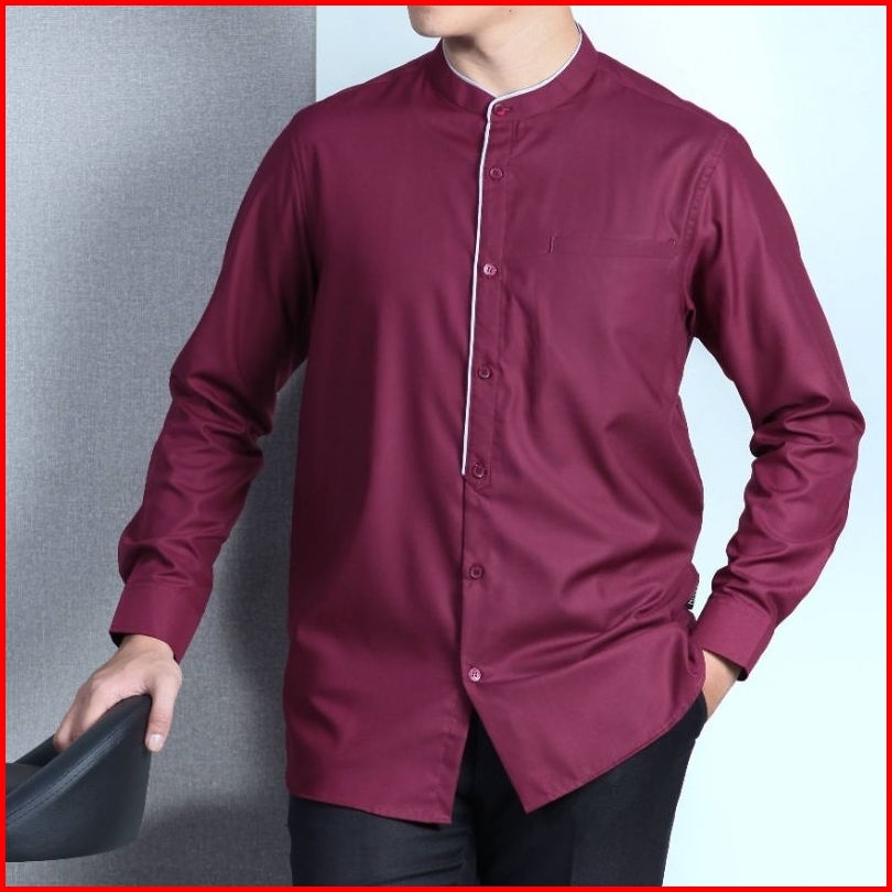 Kemko Pria Lengan Panjang Bahan Toyobo Kemeja Koko Warna Sage Denim Hitam Biru Cream Maroon M L Xl