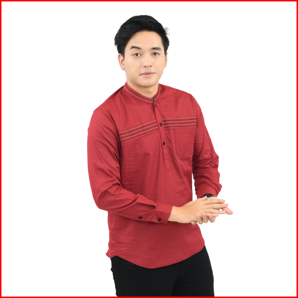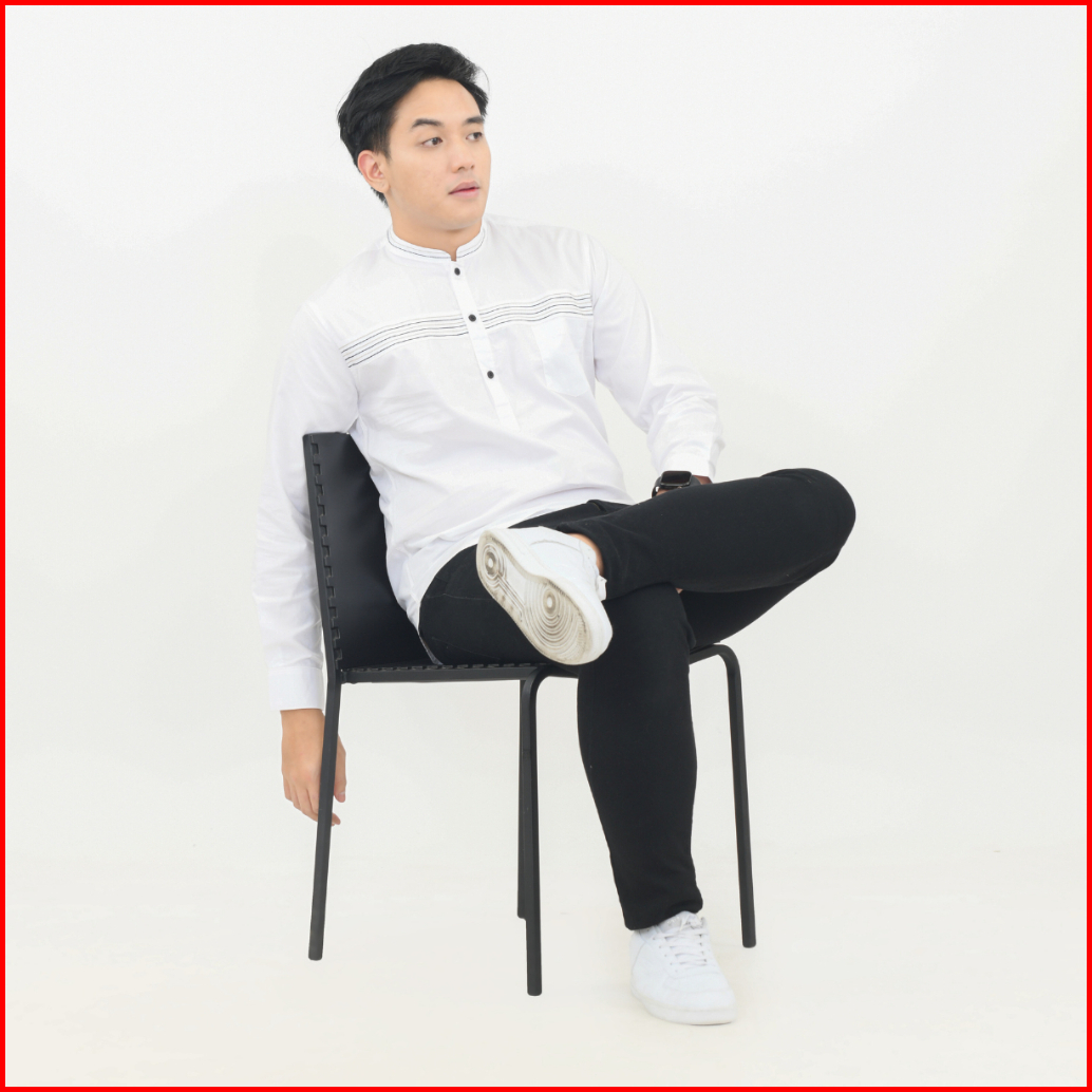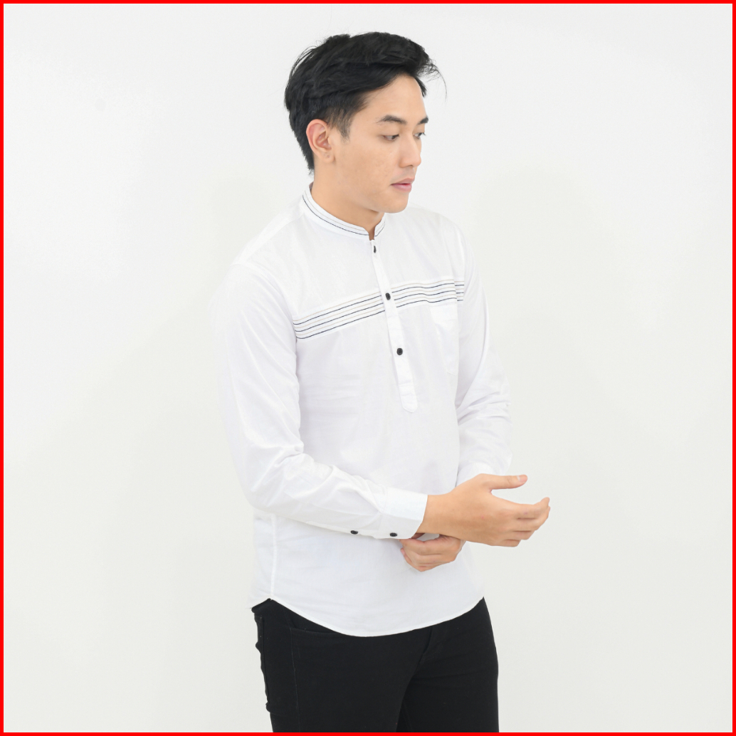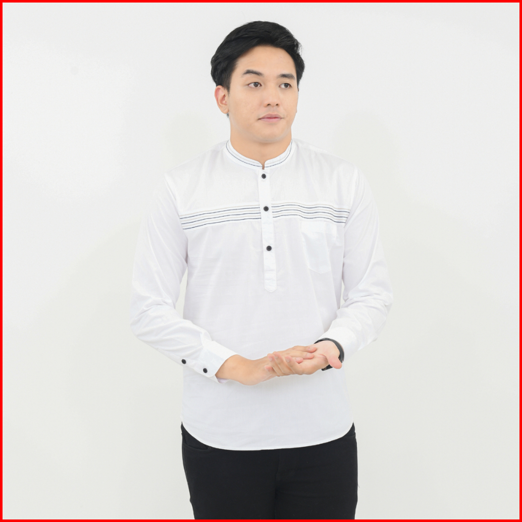 Kemeja Koko Pria Dewasa Lengan Panjang Polos Putih Elrumi Motif Bordir Mh