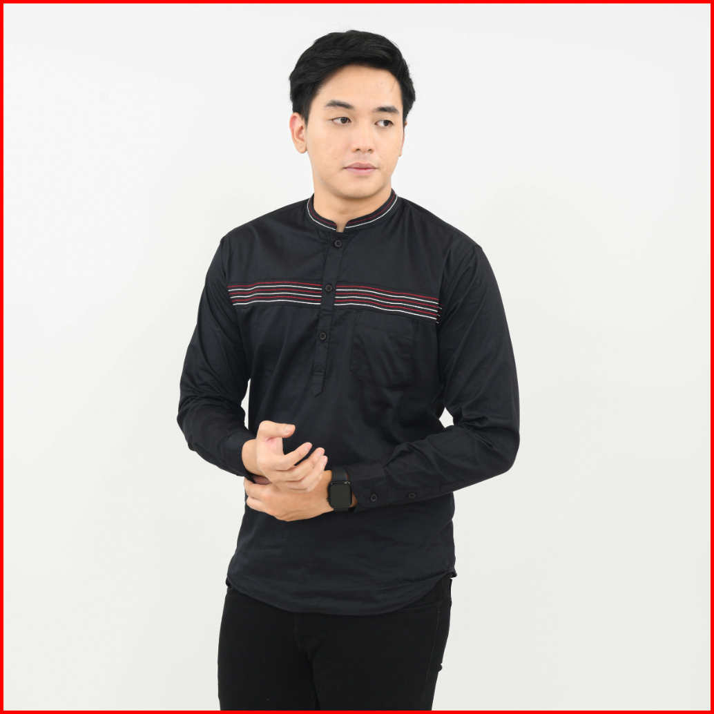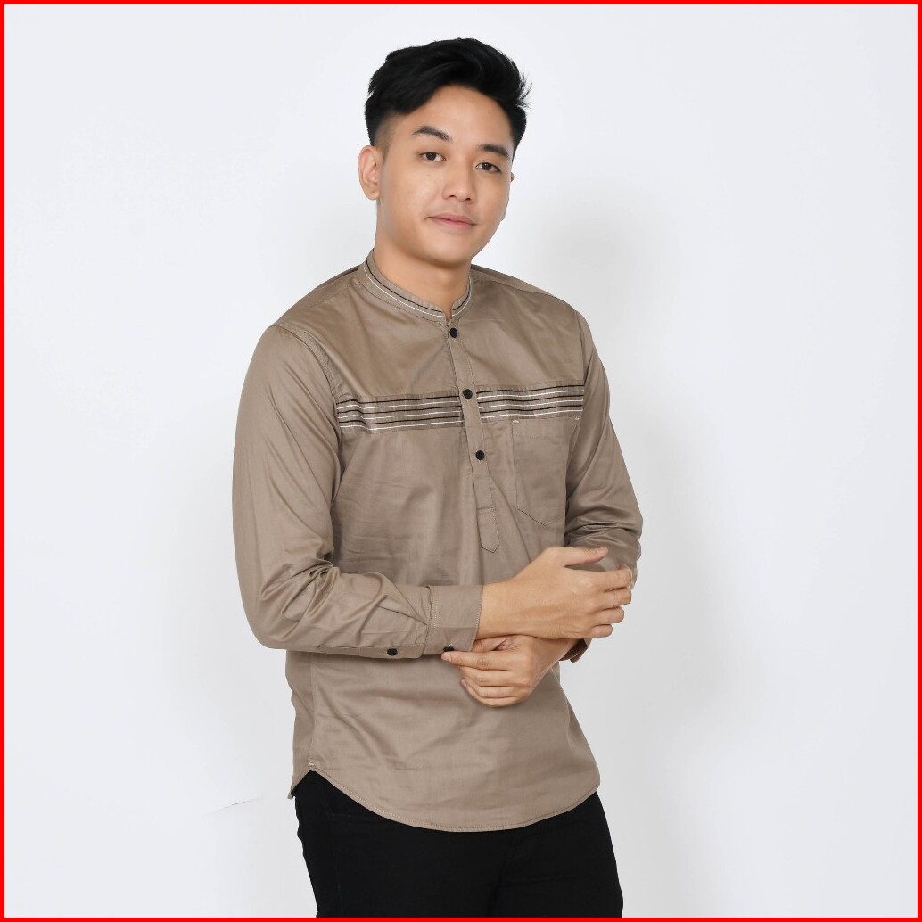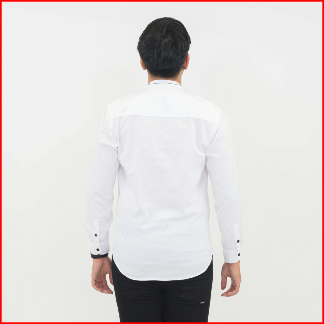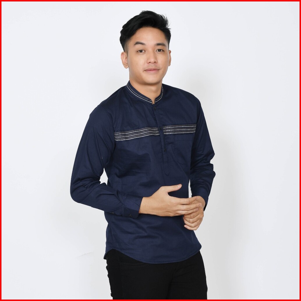 Kemeja Koko Pria Dewasa Lengan Panjang Polos Putih Elrumi Motif Bordir Mh