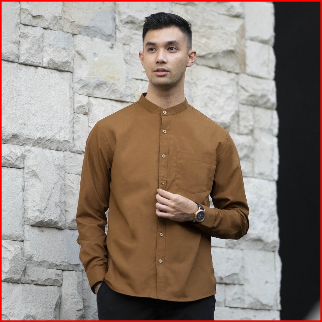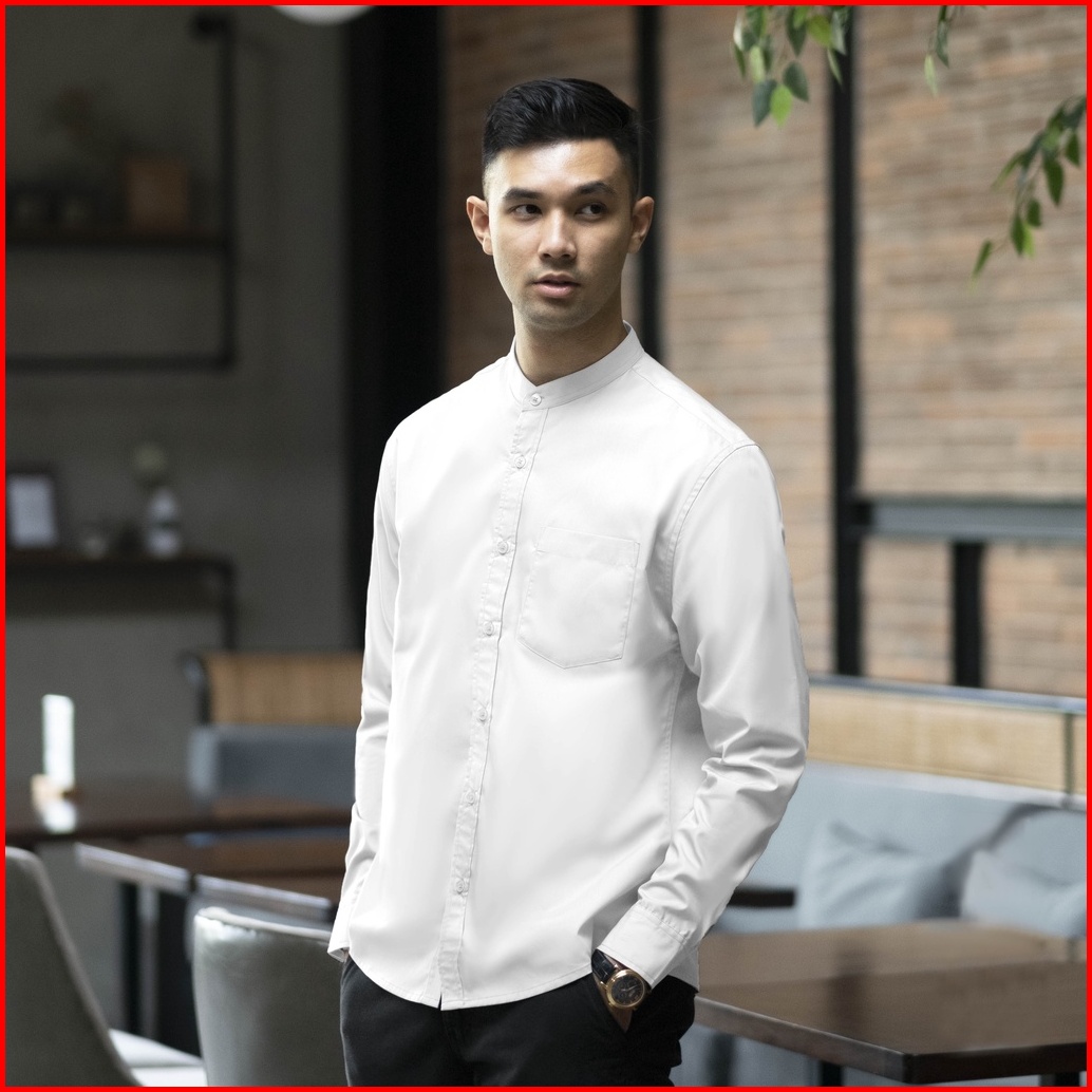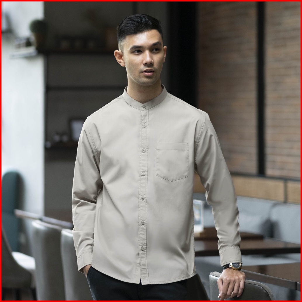 Cutoff Zein Collarless Shirt Kemeja Koko Basic Pria Polos Panjang Cotton