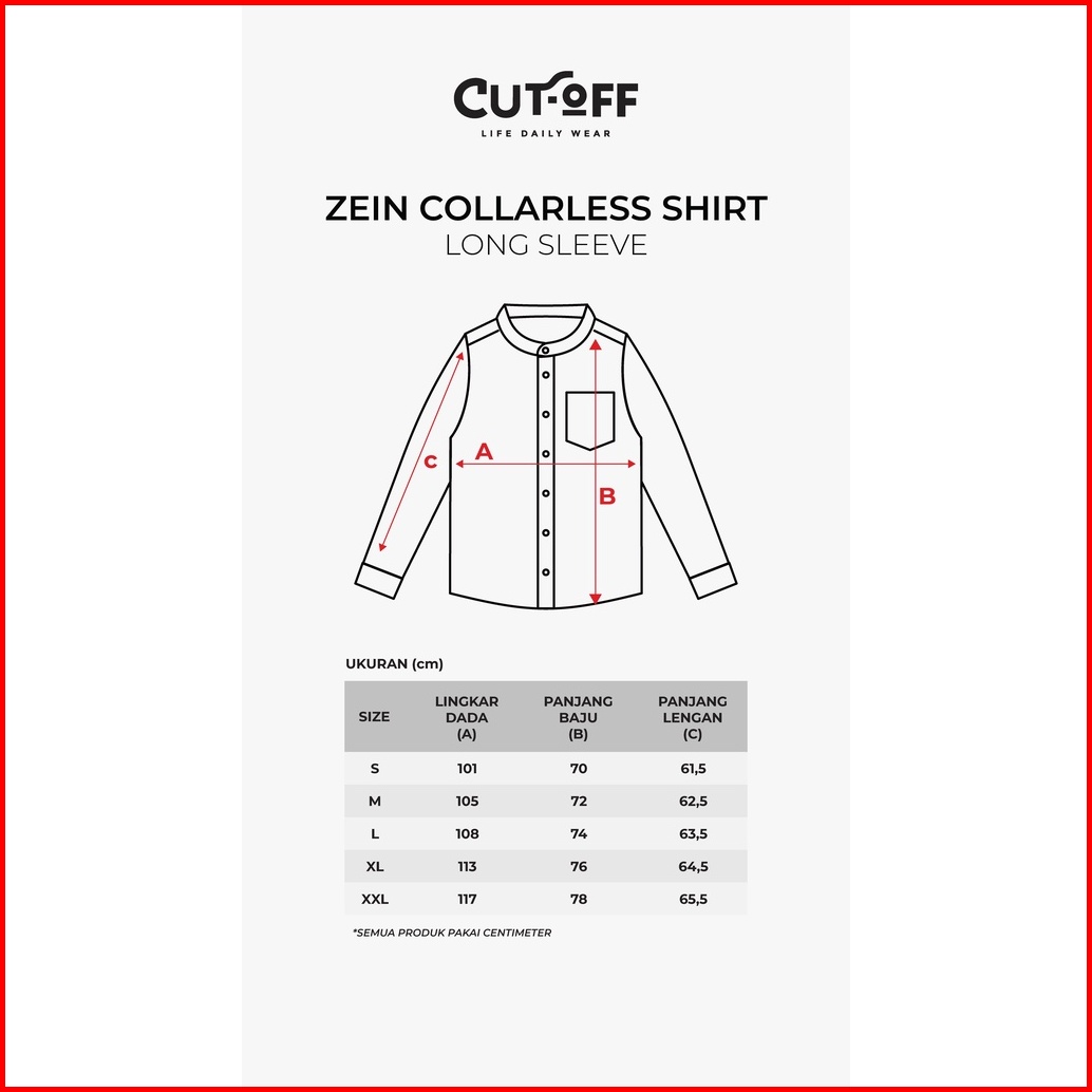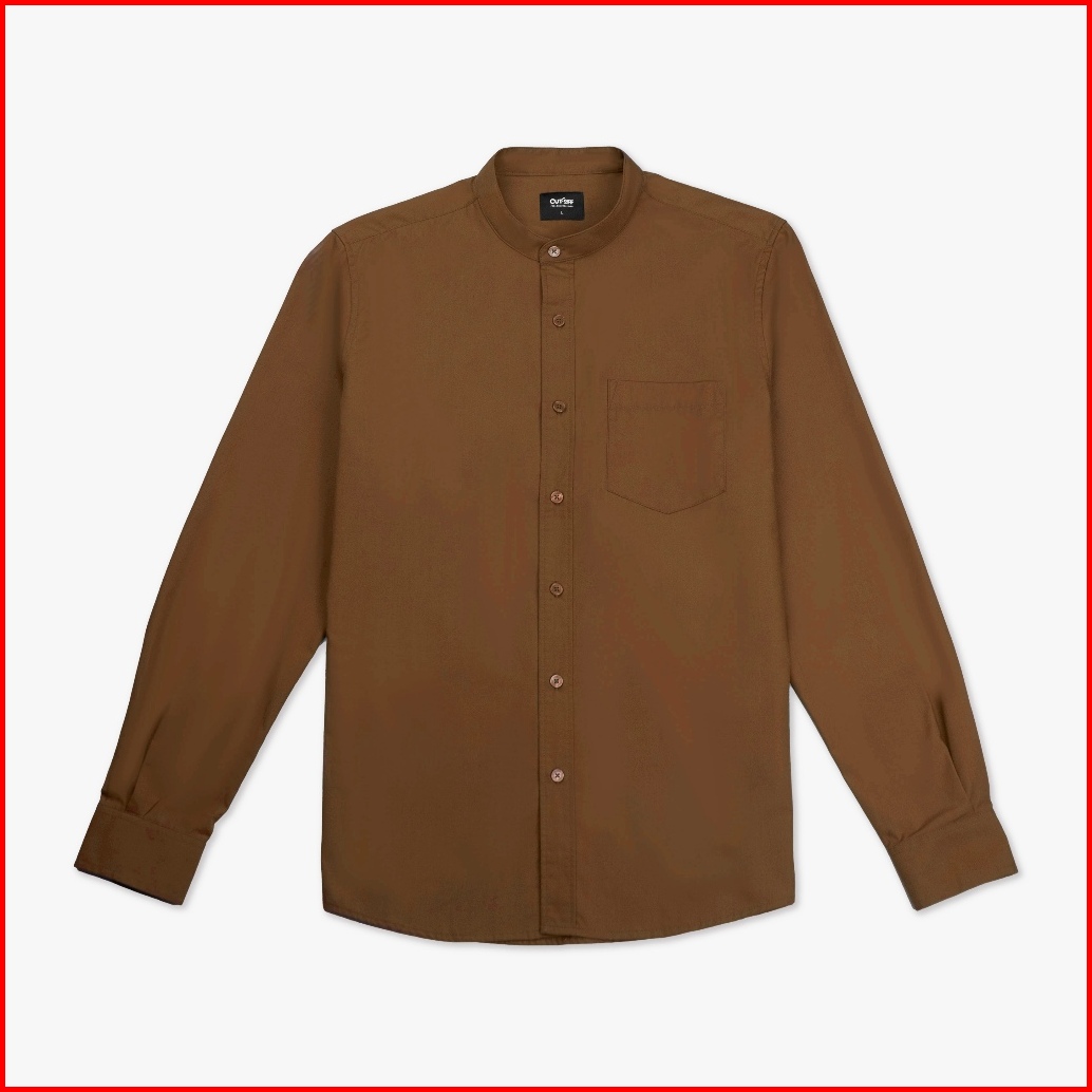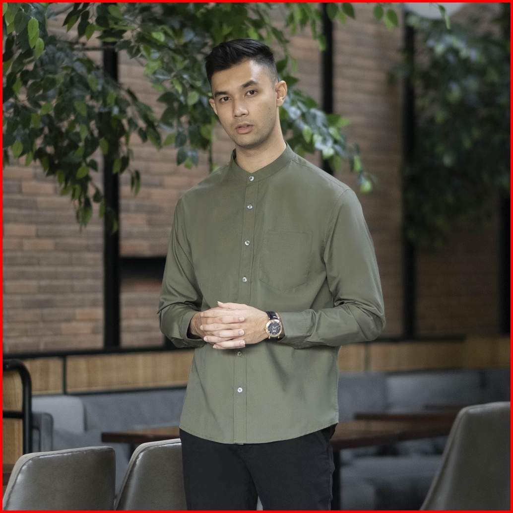 Cutoff Zein Collarless Shirt Kemeja Koko Basic Pria Polos Panjang Cotton