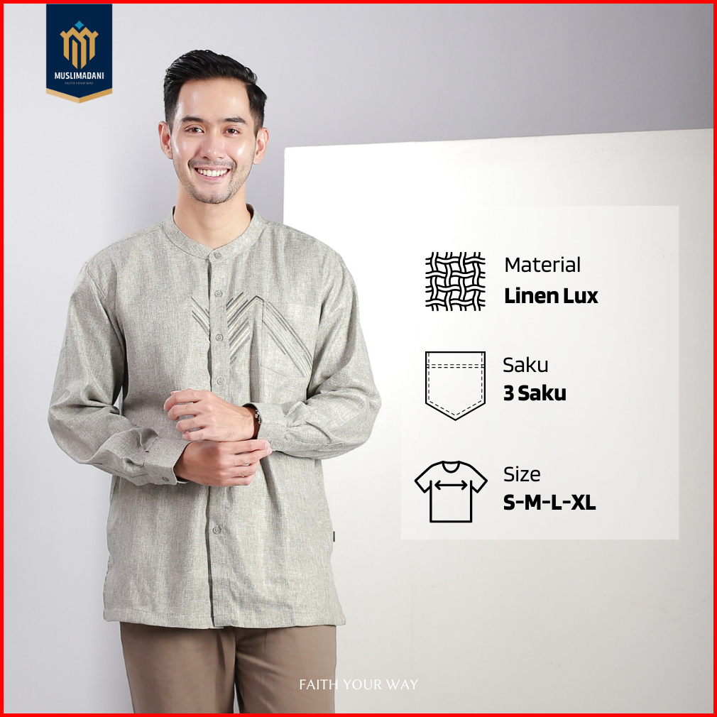 Muslimadani Baju Koko Dewasa Arshal Long Kemko Lengan Panjang