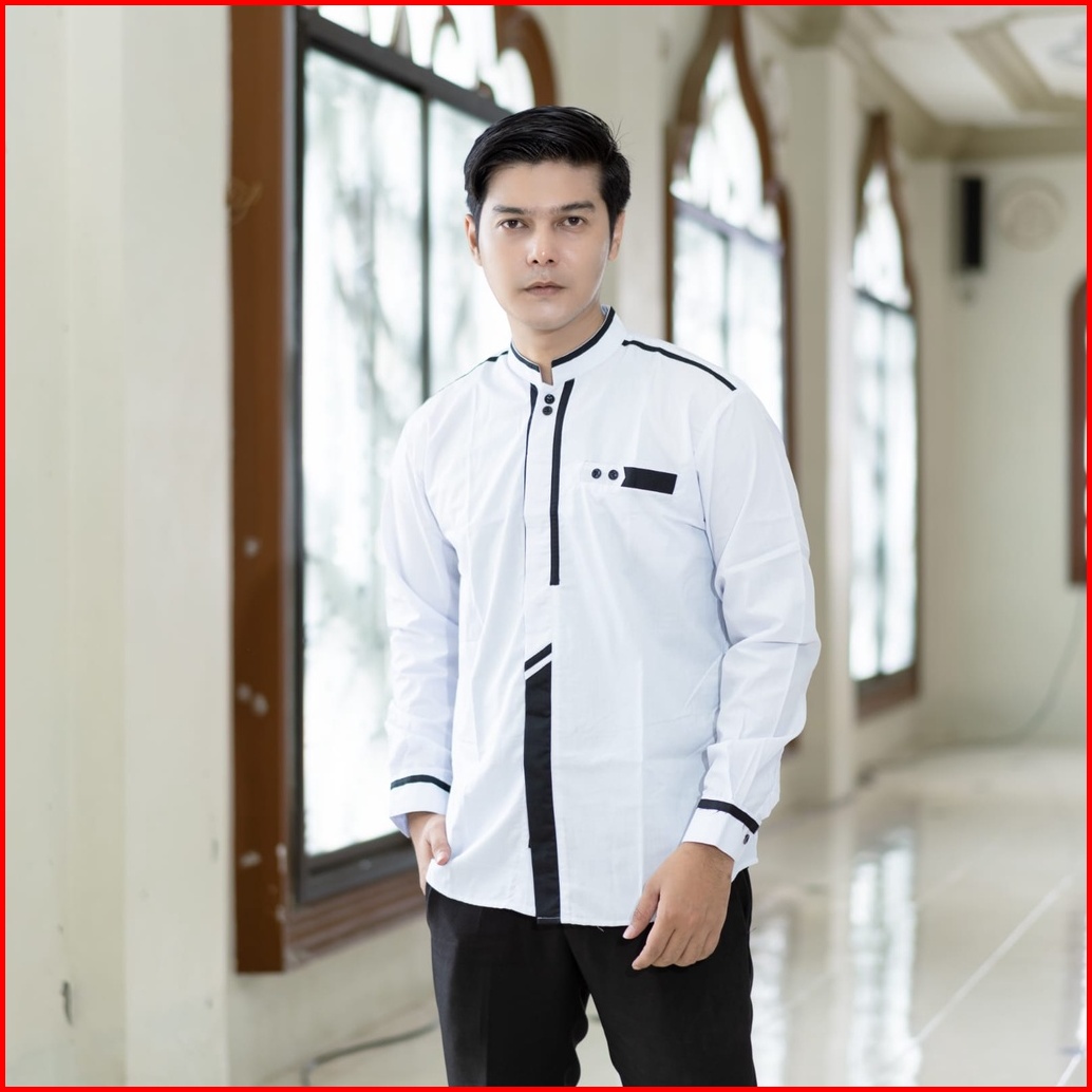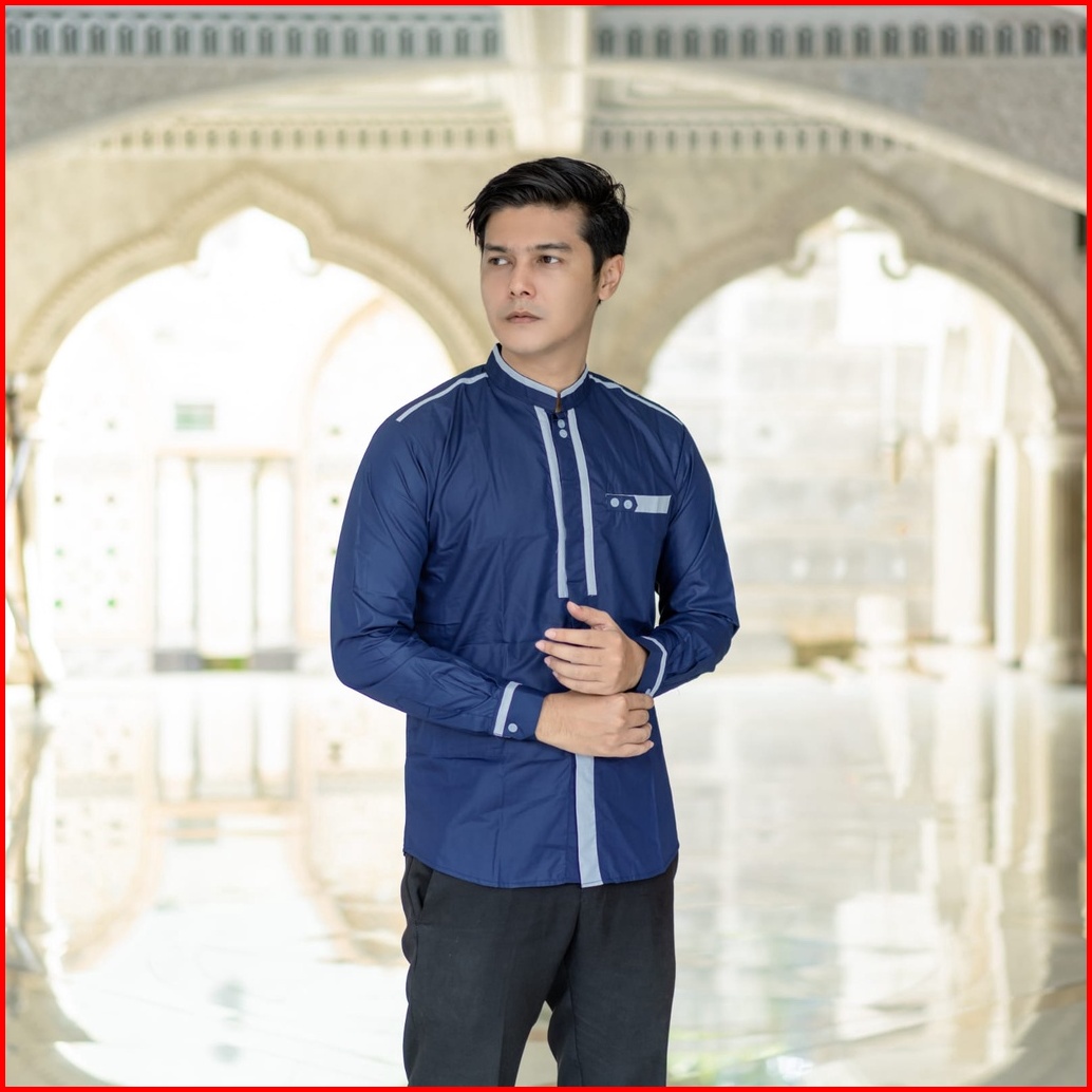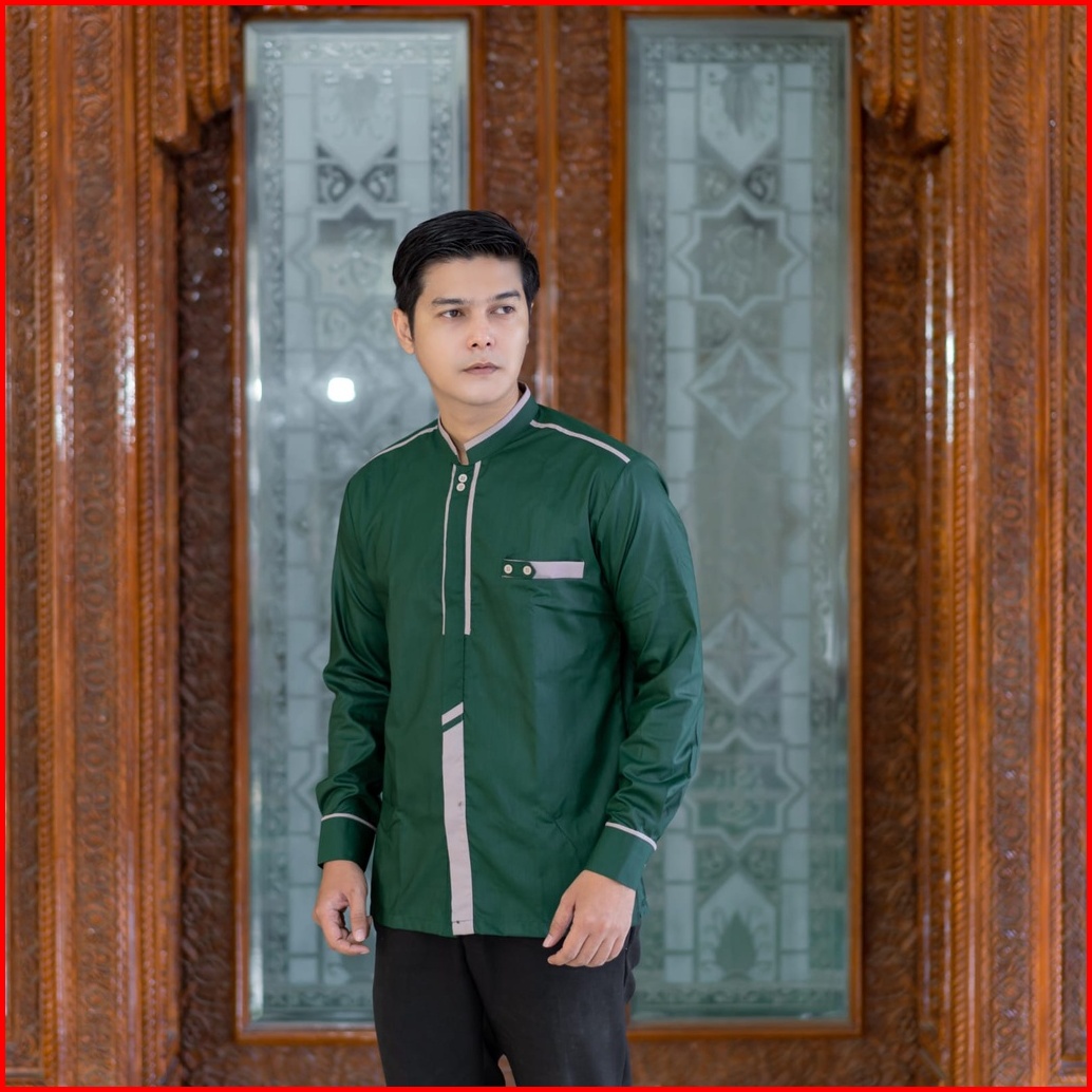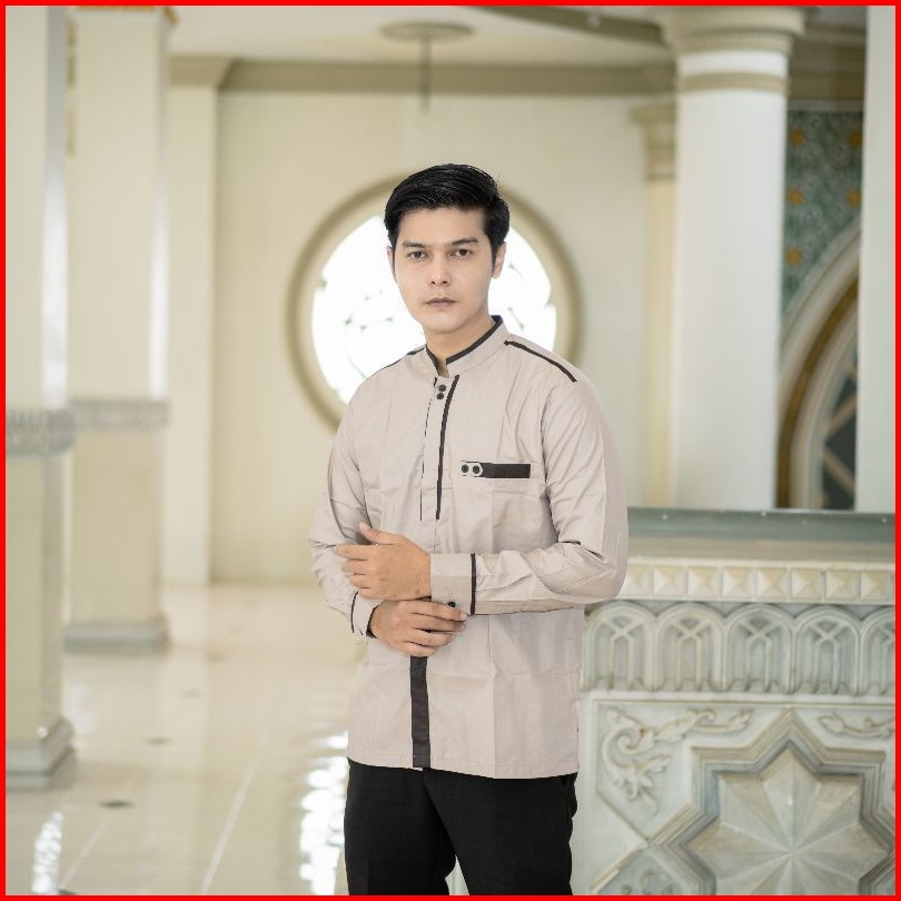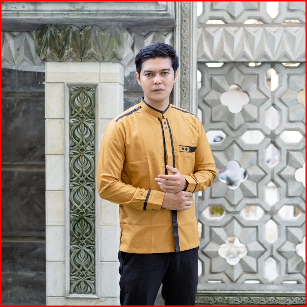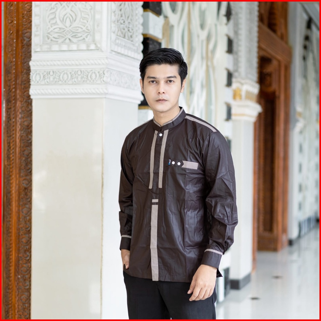 Loober - Baju Koko Pria Lengan Panjang Motif Khatulistiwa Warna Coksu M-l-xl