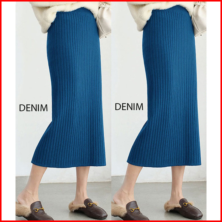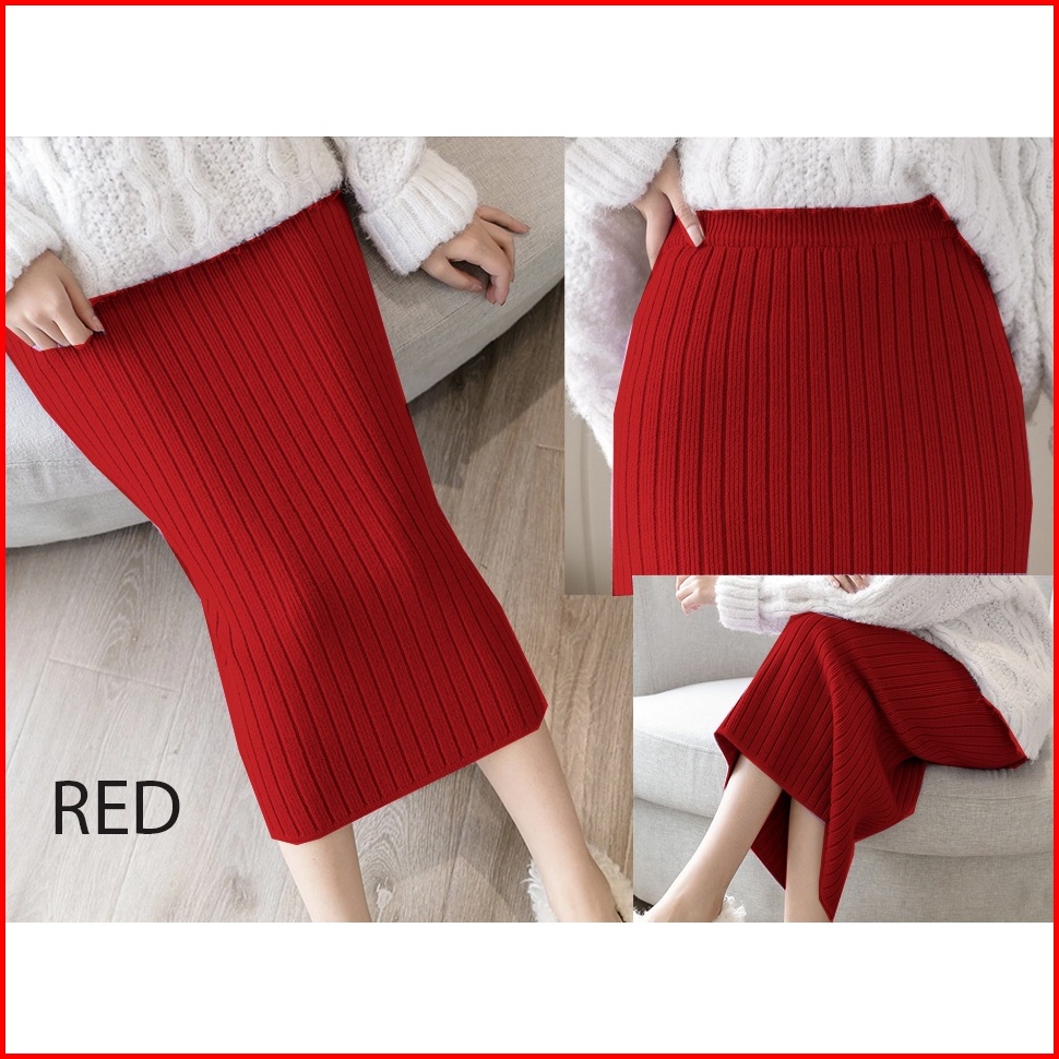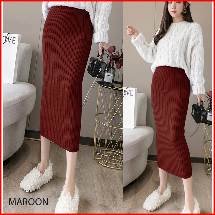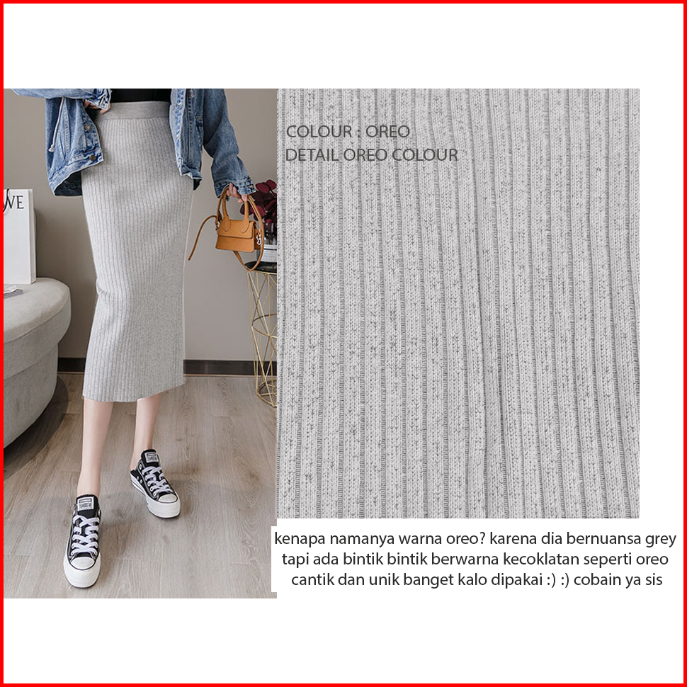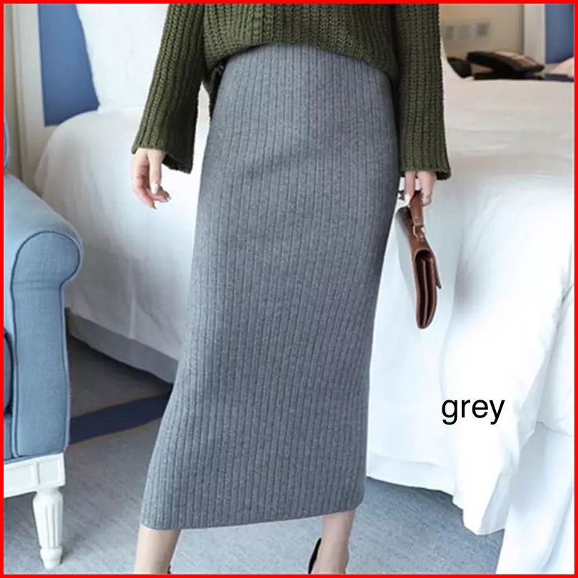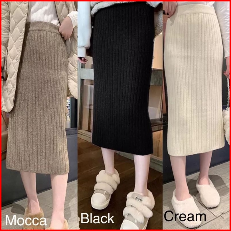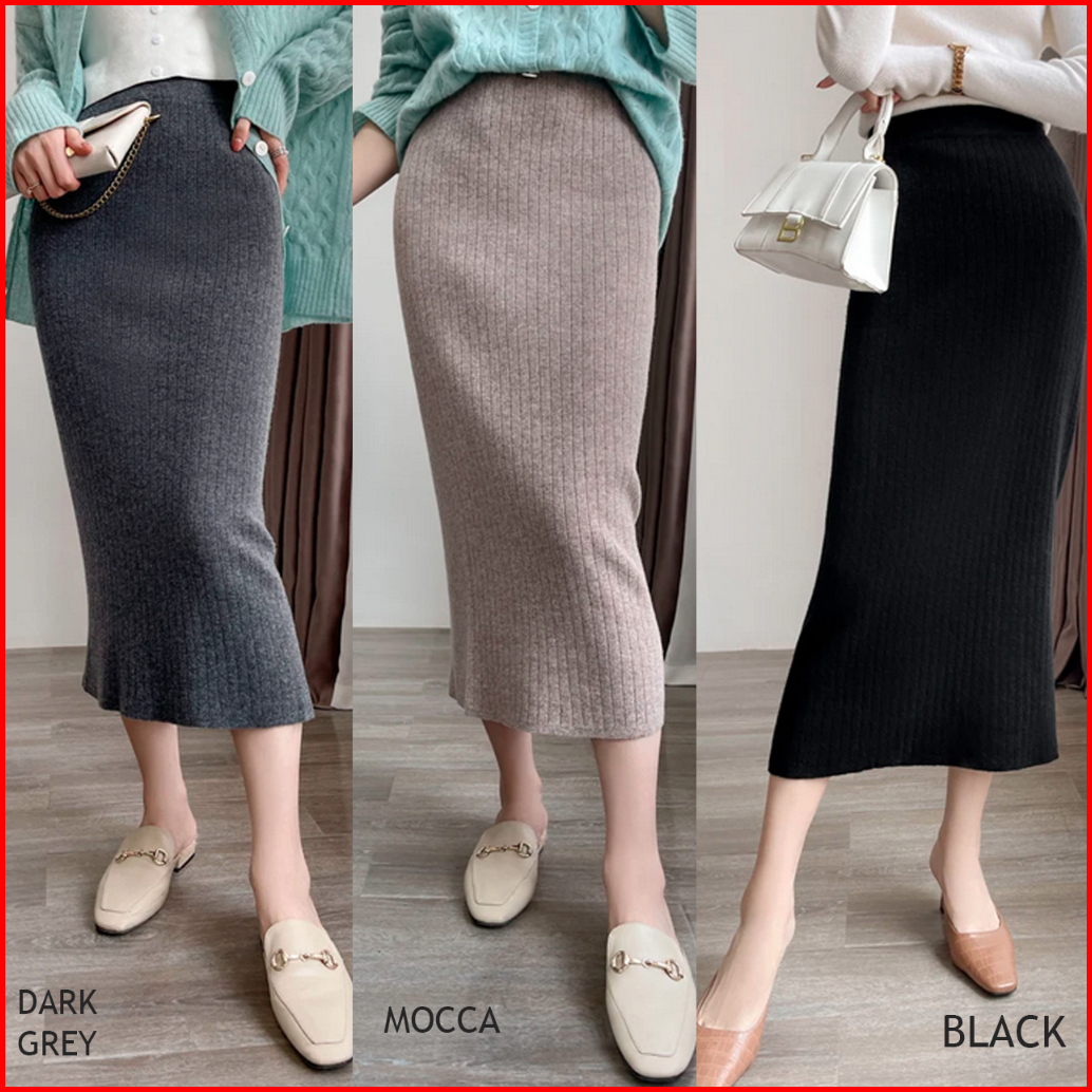 R70 Rib Midi Skirt Knit Rok Rajut Korea