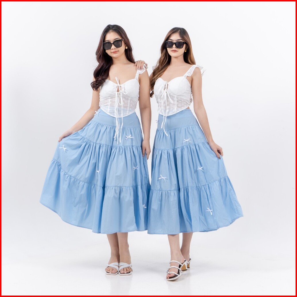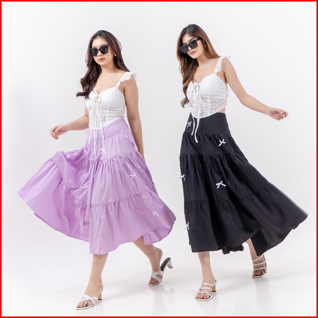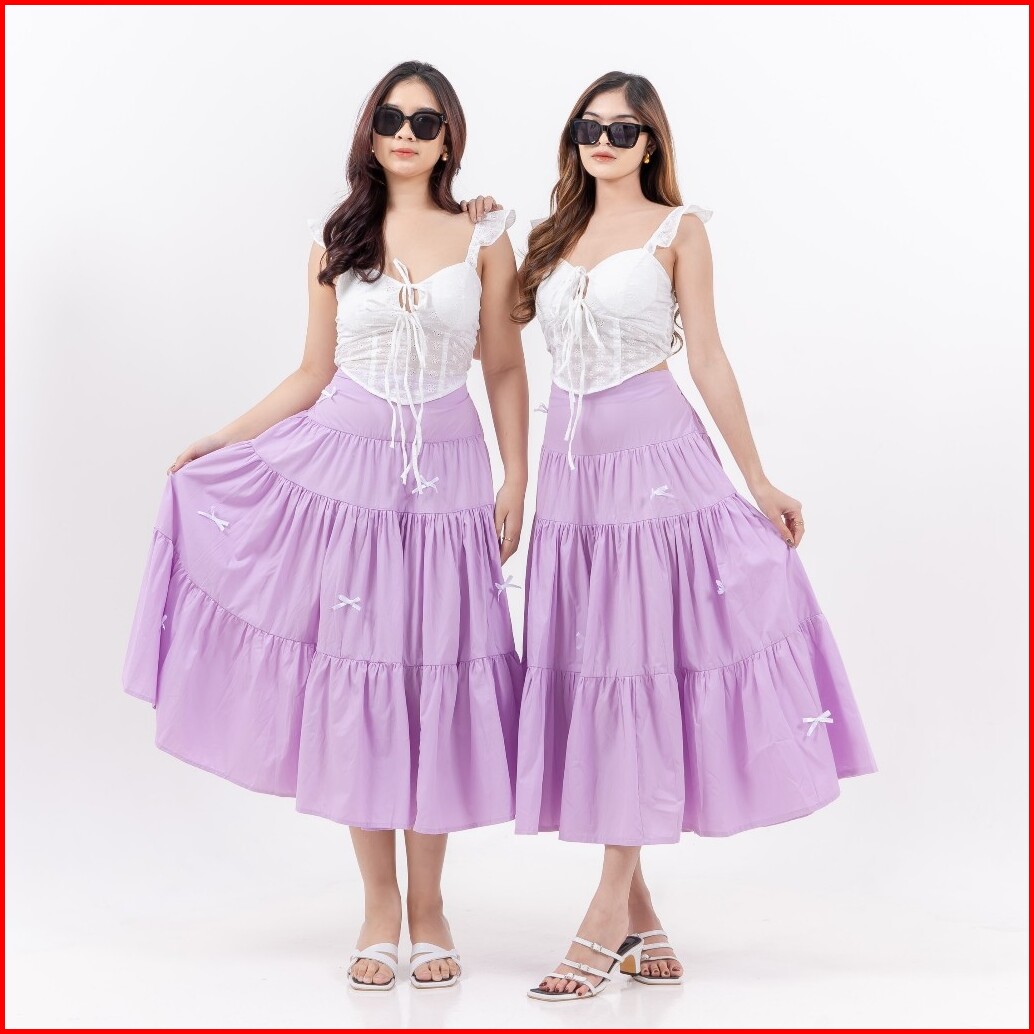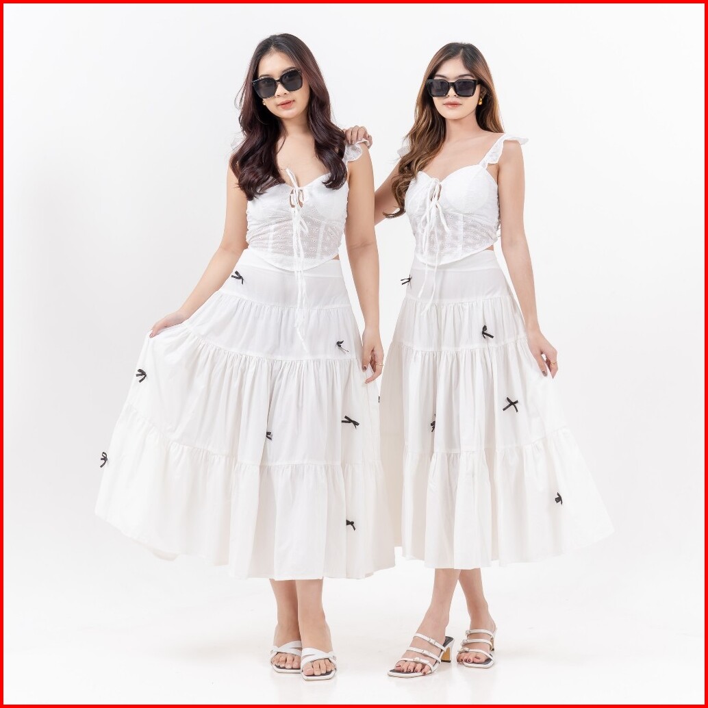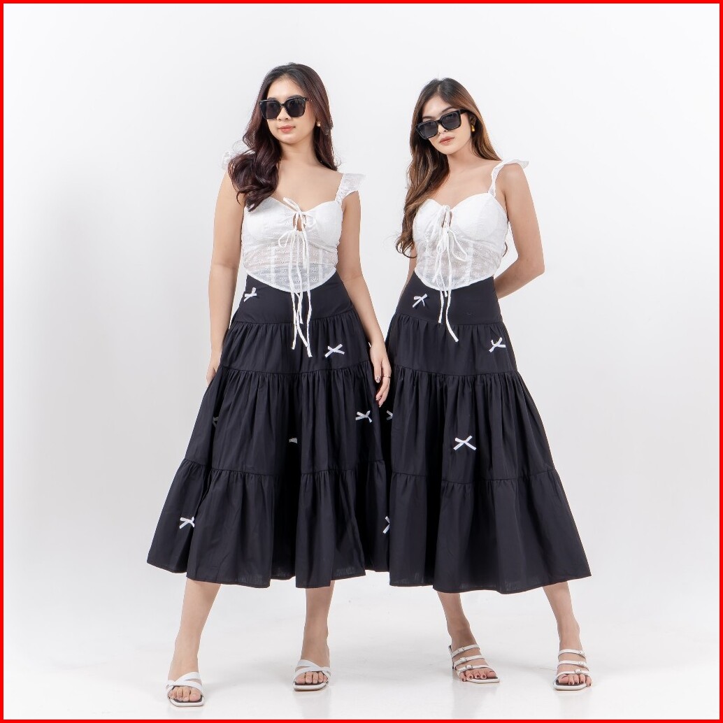 Gurlbucket Sizuka Ribbon Skirt Long Skirt Rok Cotton Lace Pakaian Wanita