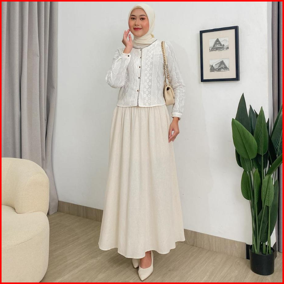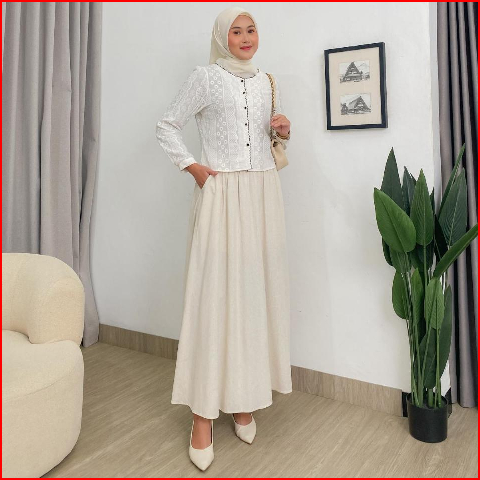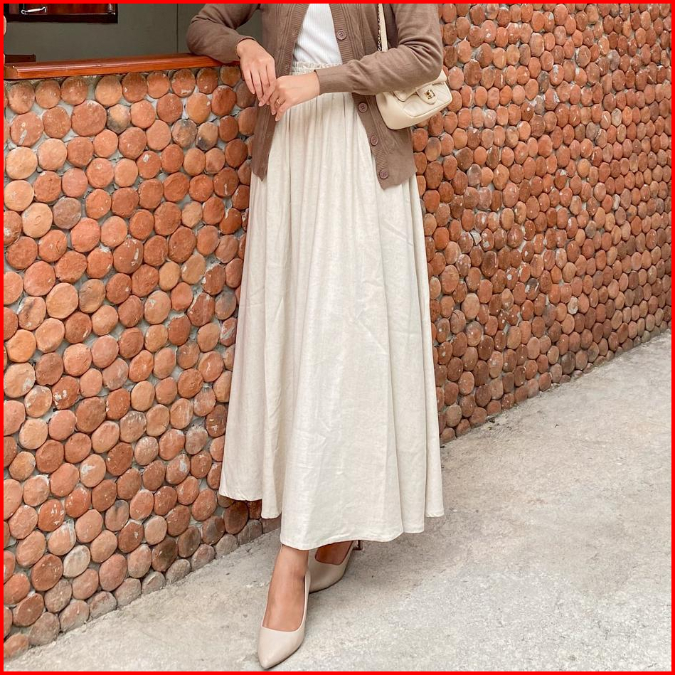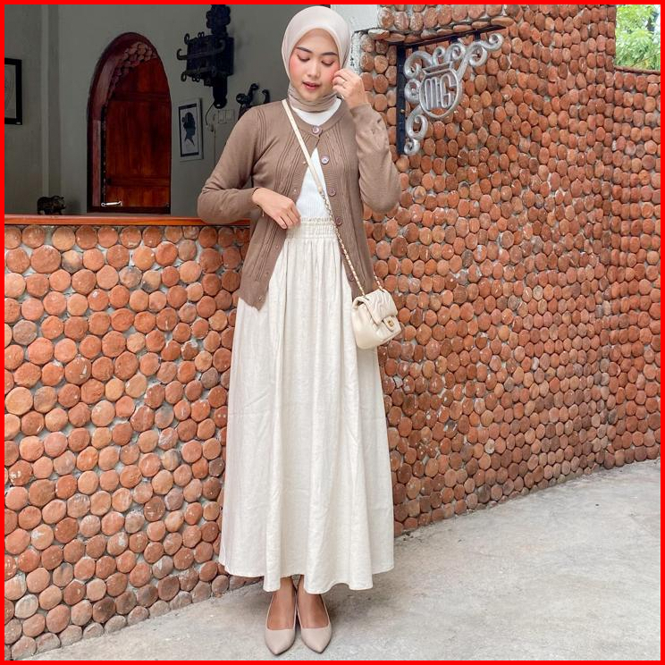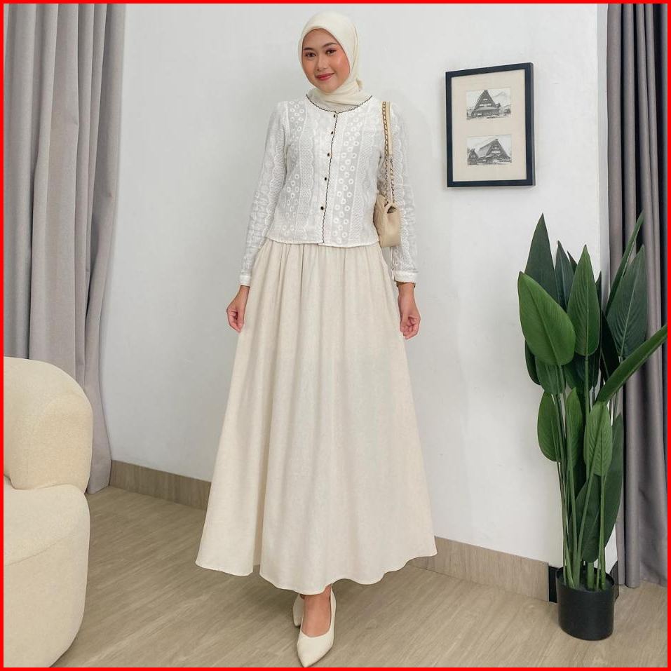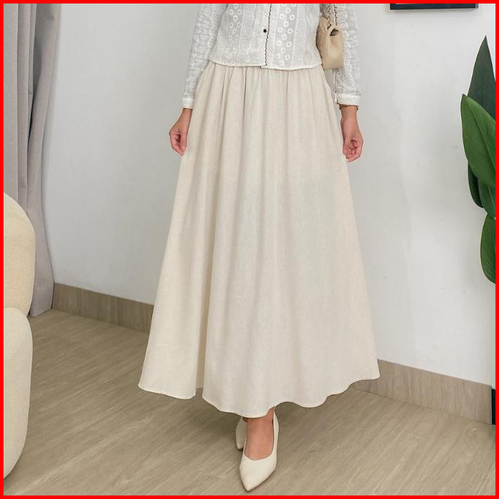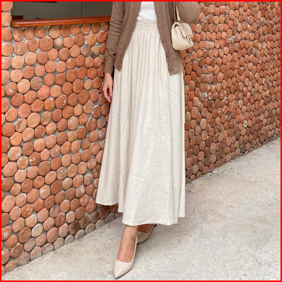 Dostifashion Nuna Skirt Rok Wanita Casual Pinggang Karet Rok Katun Lebar Premium