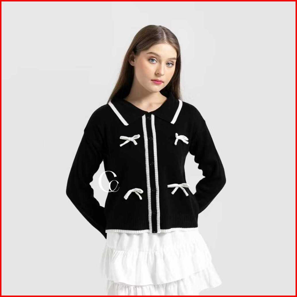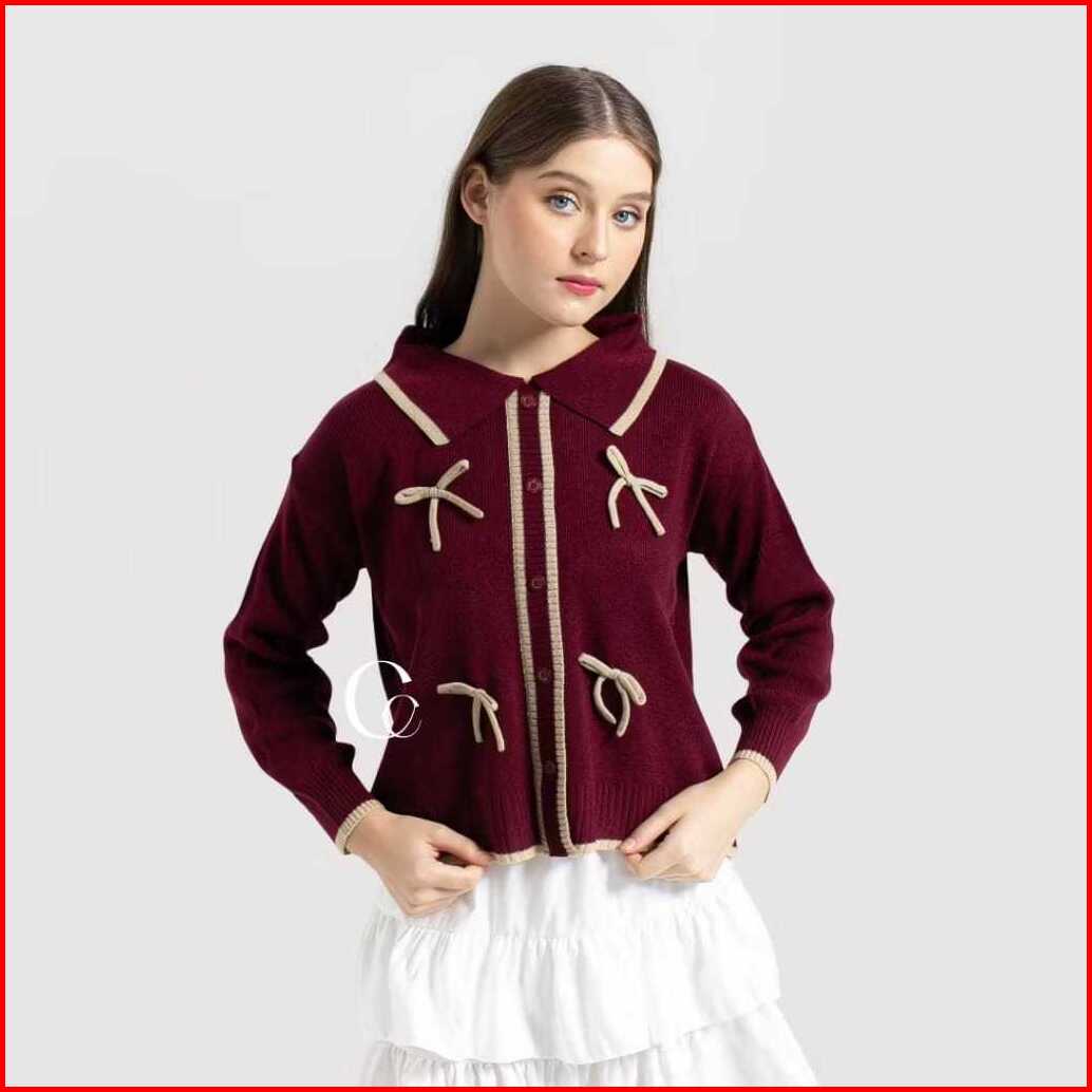 Keiko Cardigan Knit Rebecca Cardigan Pita Conquette Rajut Wanita Rahelia Baju Polo Atasan