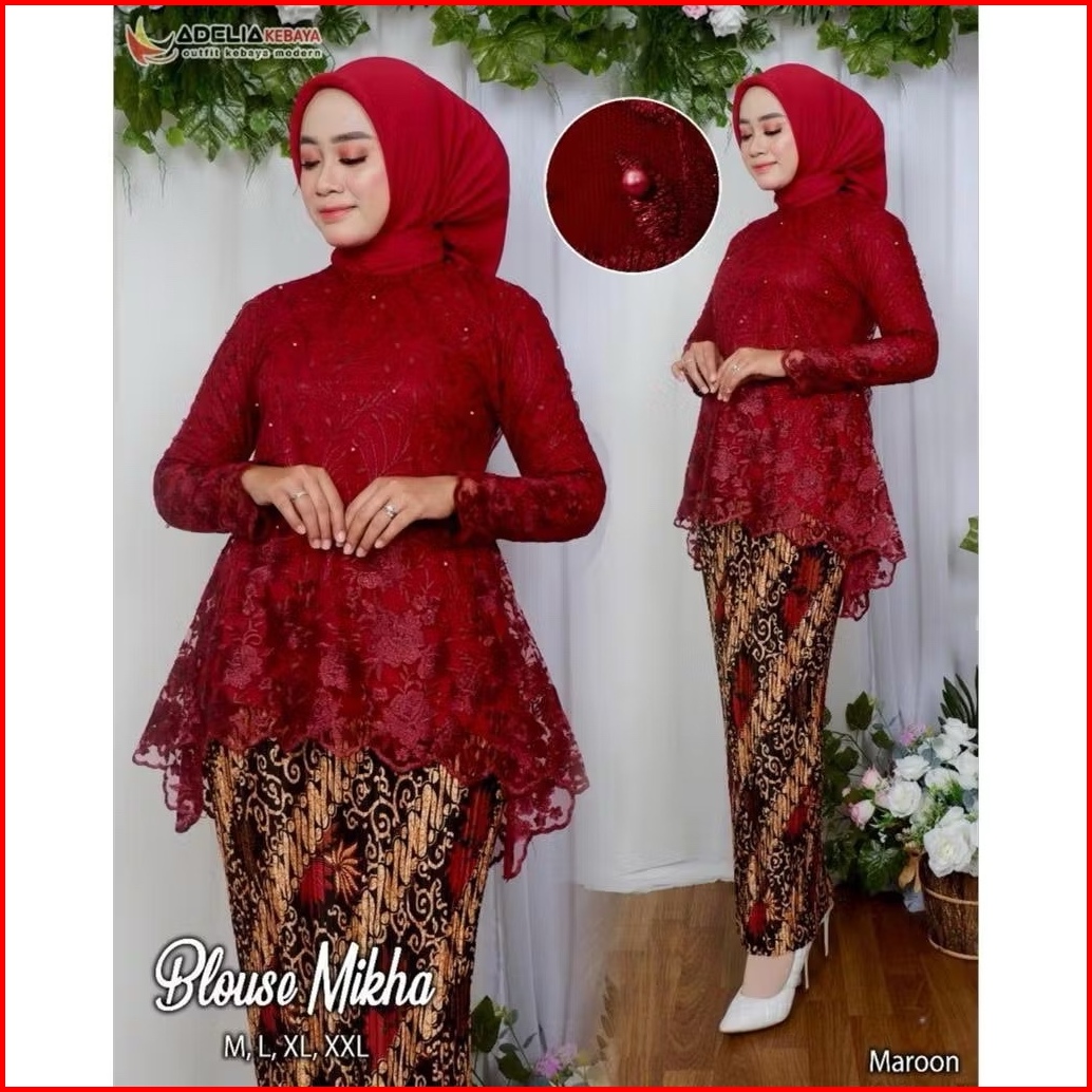 Setelan Kebaya Blouse Mikha - Baju Kebaya Modern - Pakaian Wisuda Kondangan Pagar Ayu