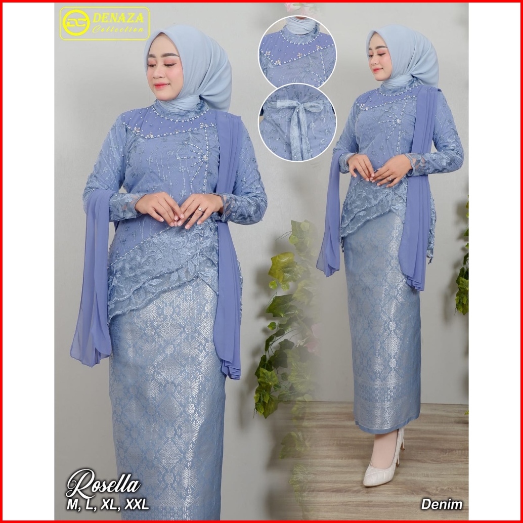 Setelan Kebaya Bloue Rosela - Kebaya Modern - Outfit Kekinian - Pakaian Wisuda Akad Nikah Dan Pesta