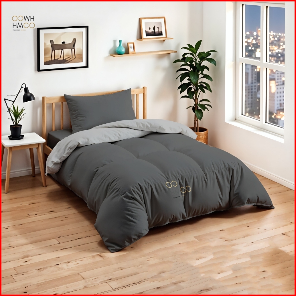 Bed Cover Set Polos Mix Dark Grey X Light Grey Ukuran 180x200 160x200 200x200