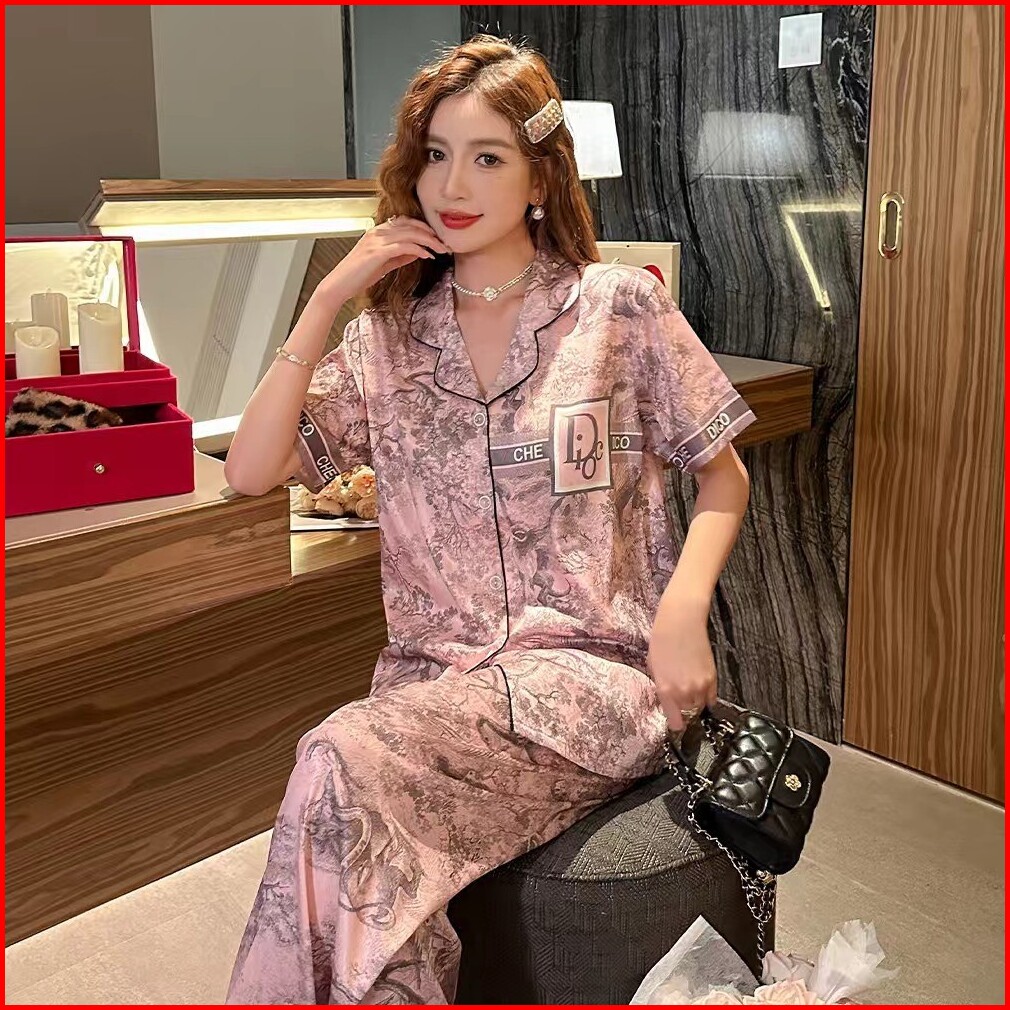 Piyama Wanita Sutra Es Lukisan Tinta Baru Bisa Dipakai Di Luar Set Pakaian Rumah