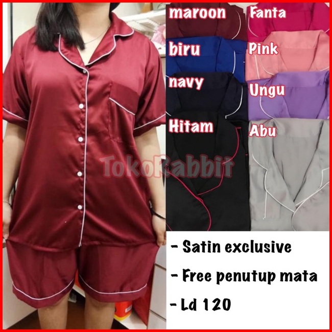 Piyama 3l Ld120 Jumbo Pendek Satin Exclusive Silk Polos