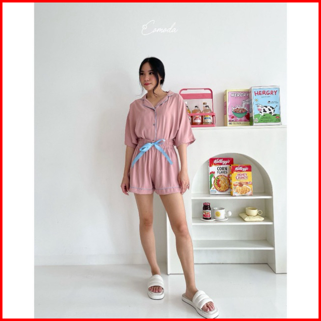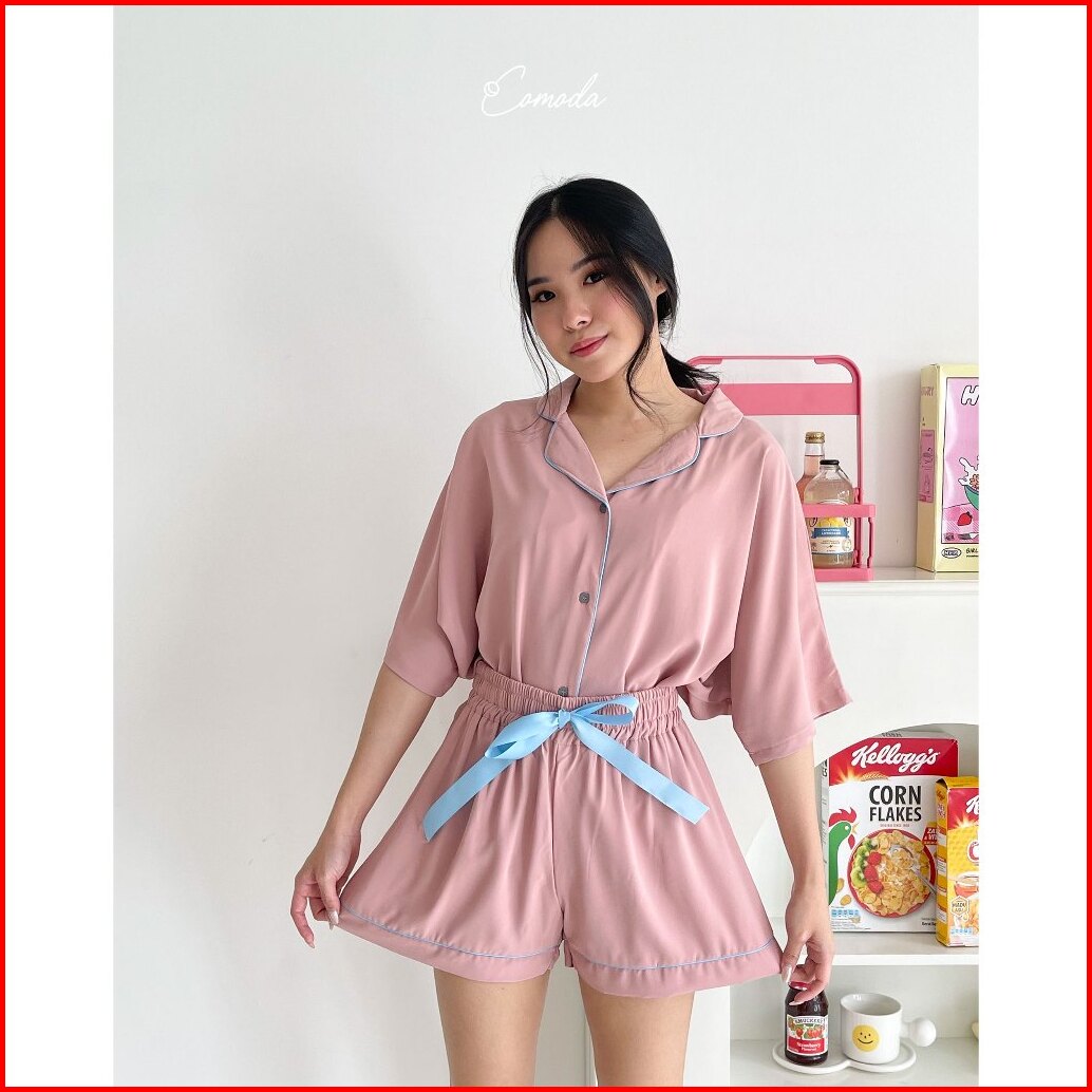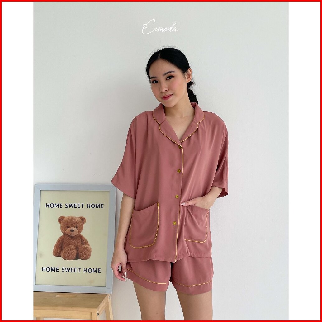 Comoda - Lora Set Piyama Set Baju Tidur Pendek Wanita Soft Silk Premium