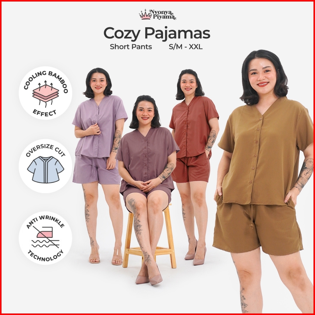 Best Seller Nyonya Piyama Poly Bamboo Oversized Cozy Set Celana Pendek Polos
