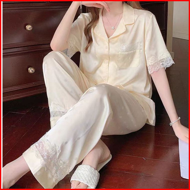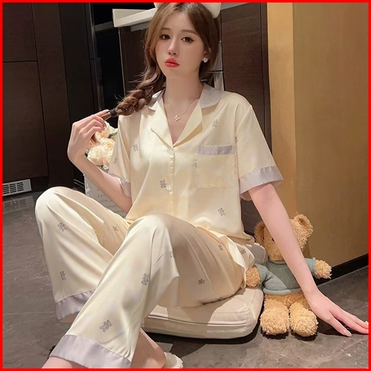 Codpiyama Wanita Setelan Satin Lengan Pendek Baju Tidur Wanita Korea Style Murah Lucu Minimalis
