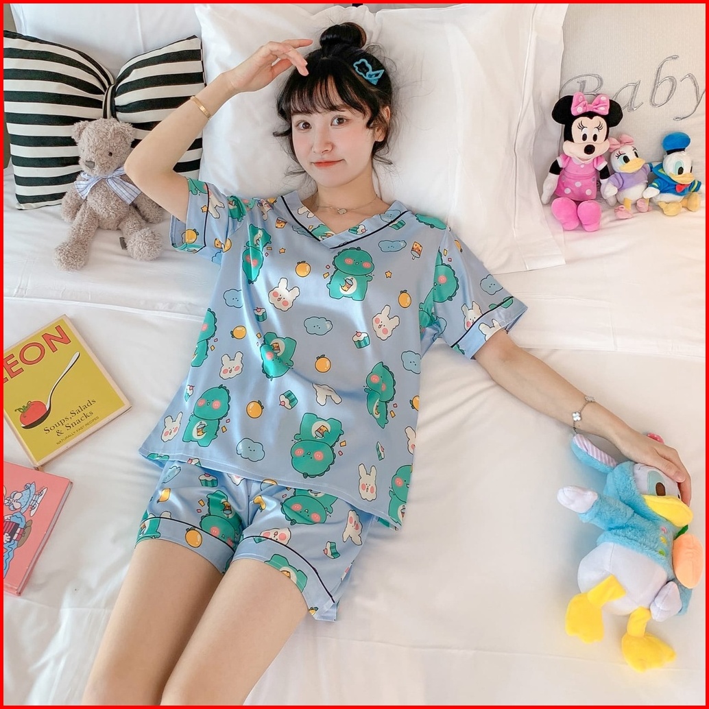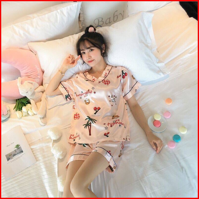 Redpink Stelan Piyama Deep V-neck Lengan Pendek Fit Celana Pendek Musim Panas All Motif Varian Kekinian Printing Beatifu