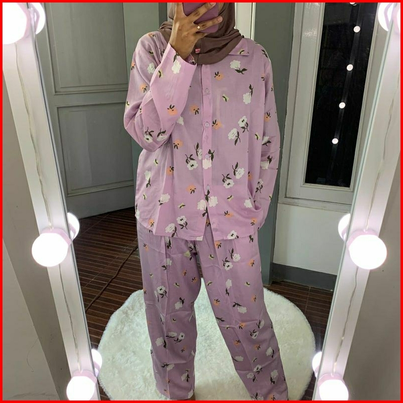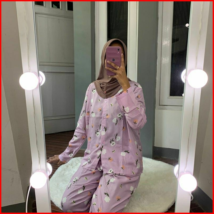 Piyama Wanita Piyama Motif Piyama Set Panjang Piyama Rayon Setelan Baju Tidur Wanita